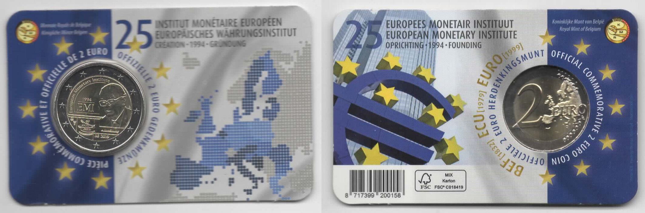 Belgien 2 Euro Münze - 25-jähriges Bestehen des Europäischen Währungsinstituts 2019 in Coincard - Französische Version