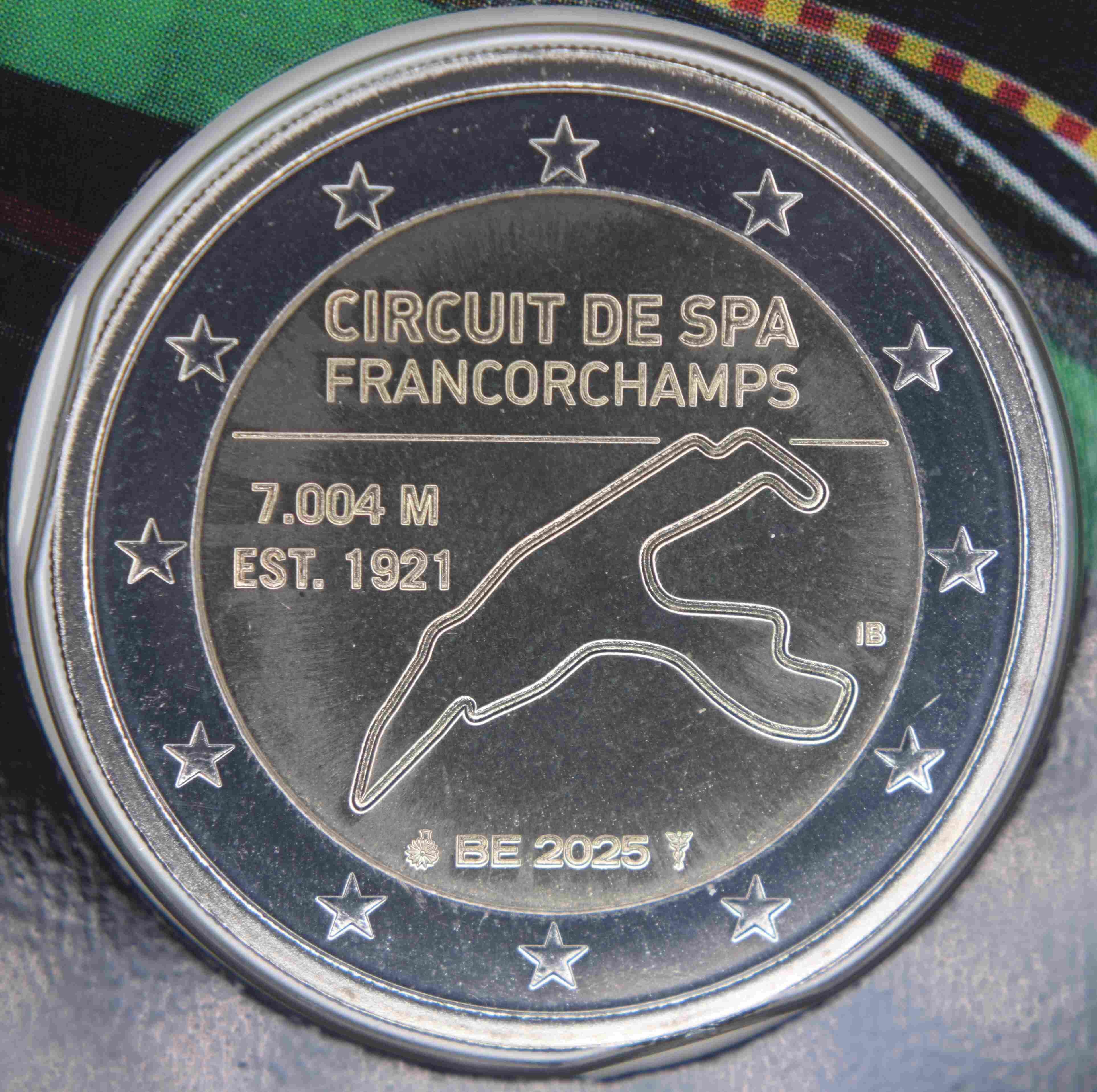 Belgien 2 Euro Münze - Rennstrecke Spa-Francorchamps 2025 in Coincard - Französische Version