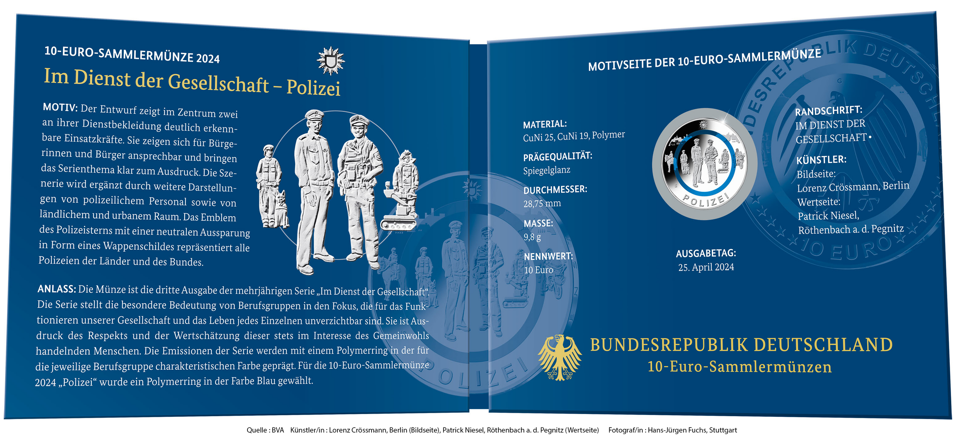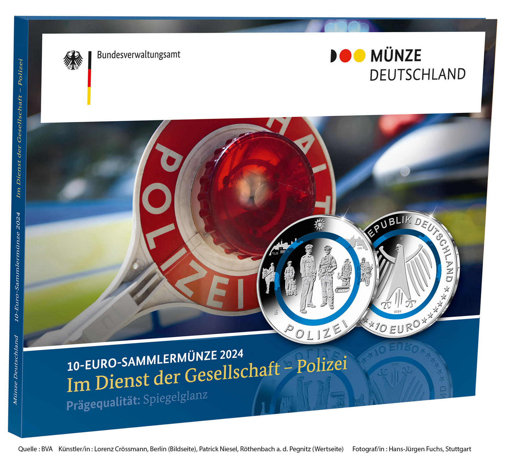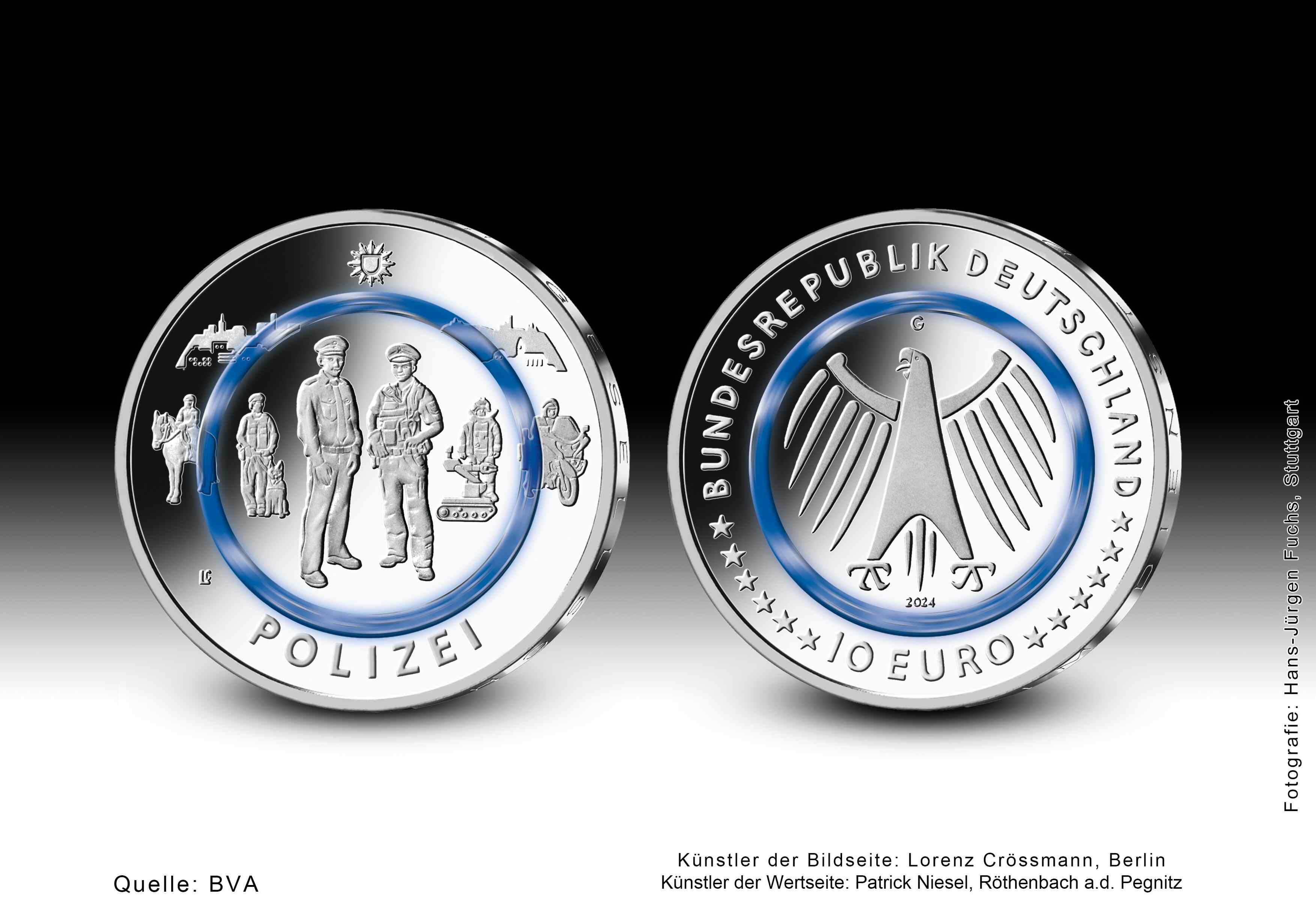 Deutschland 10 Euro Gedenkmünze - Im Dienst der Gesellschaft - Polizei 2024 - G - Karlsruhe - Polierte Platte