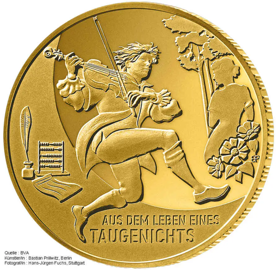 Deutschland 100 Euro Goldmünze - Meisterwerke der deutschen Literatur - Joseph von Eichendorff - Aus dem Leben eines Taugenichts - A (Berlin) 2025