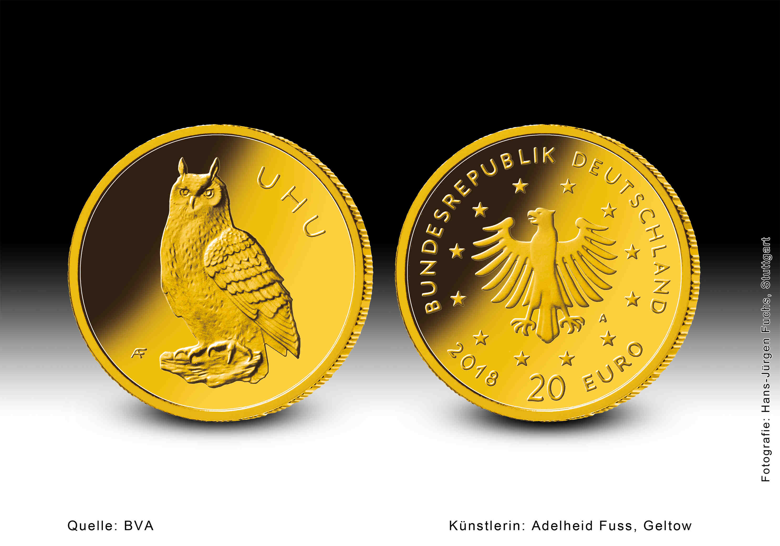 Deutschland 20 Euro Goldmünze Heimische Vögel - Motiv 3 - Uhu - J (Hamburg) 2018