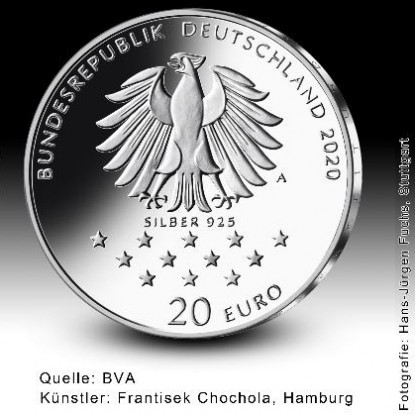 Auflage: 107.000 inkl. Gedenkmünzensatz 2020 | Silber: 925/1000 | Gewicht: 18,00 g | Durchmesser: 32,5 mm | teilweise koloriert