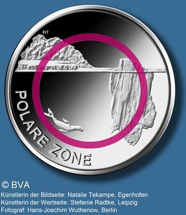 Auflage: 600.000 | Kupfer-Nickel | Gewicht: 9,00 g | Durchmesser: 27,25 mm | Violetter Polymerring (fünf verschiedene Violetttöne)