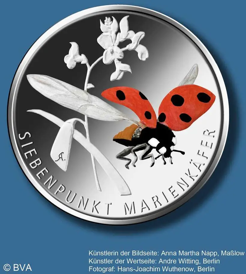 Deutschland 5 Euro Gedenkmünze - Wunderwelt Insekten - Siebenpunkt Marienkäfer 2023 - Stempelglanz