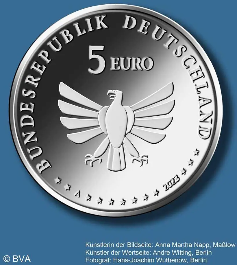 Auflage: 1.250.000 | Kupfer-Nickel | Gewicht: 9,68 g | Durchmesser: 27,25 mm | Prägestätte A - Berlin | teilweise koloriert
