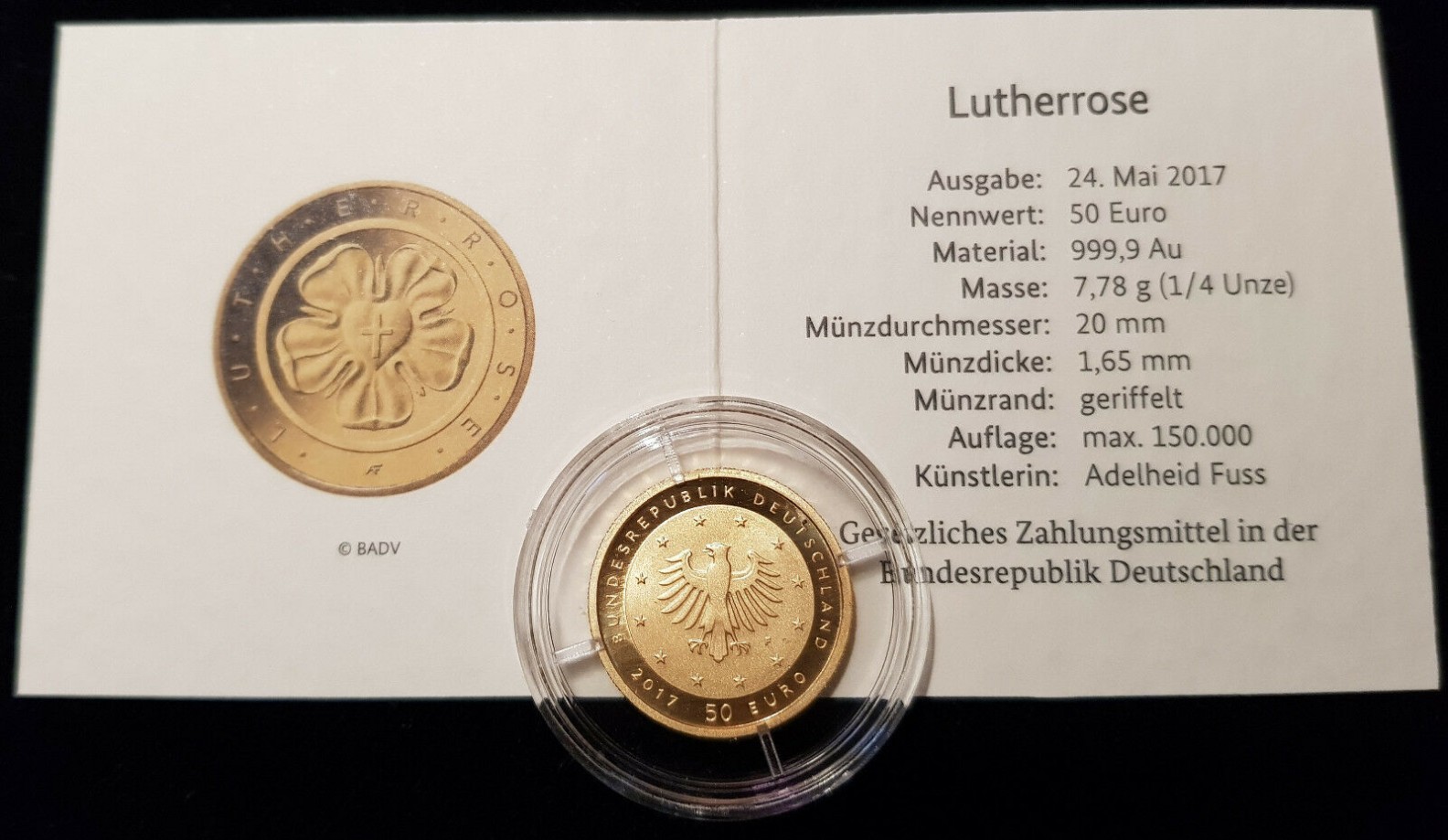 Deutschland 50 Euro Goldmünze - Lutherrose - F (Stuttgart) 2017