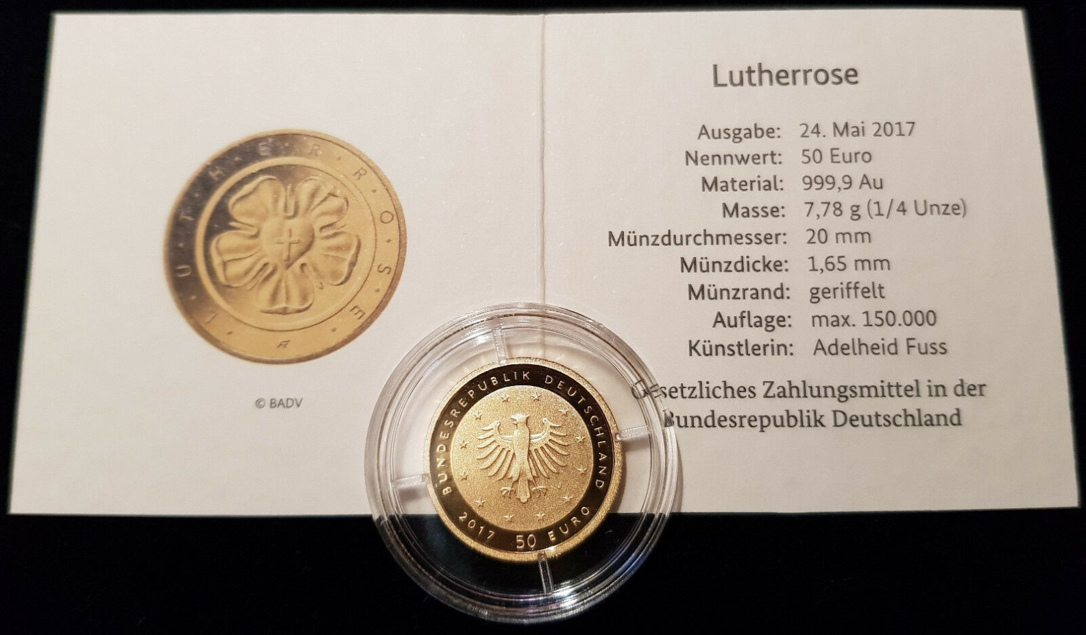 Deutschland 50 Euro Goldmünze - Lutherrose - J (Hamburg) 2017