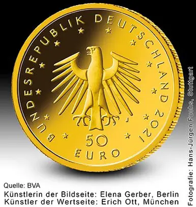 Deutschland 50 Euro Goldmünze - Musikinstrumente - Pauke - F (Stuttgart) 2021