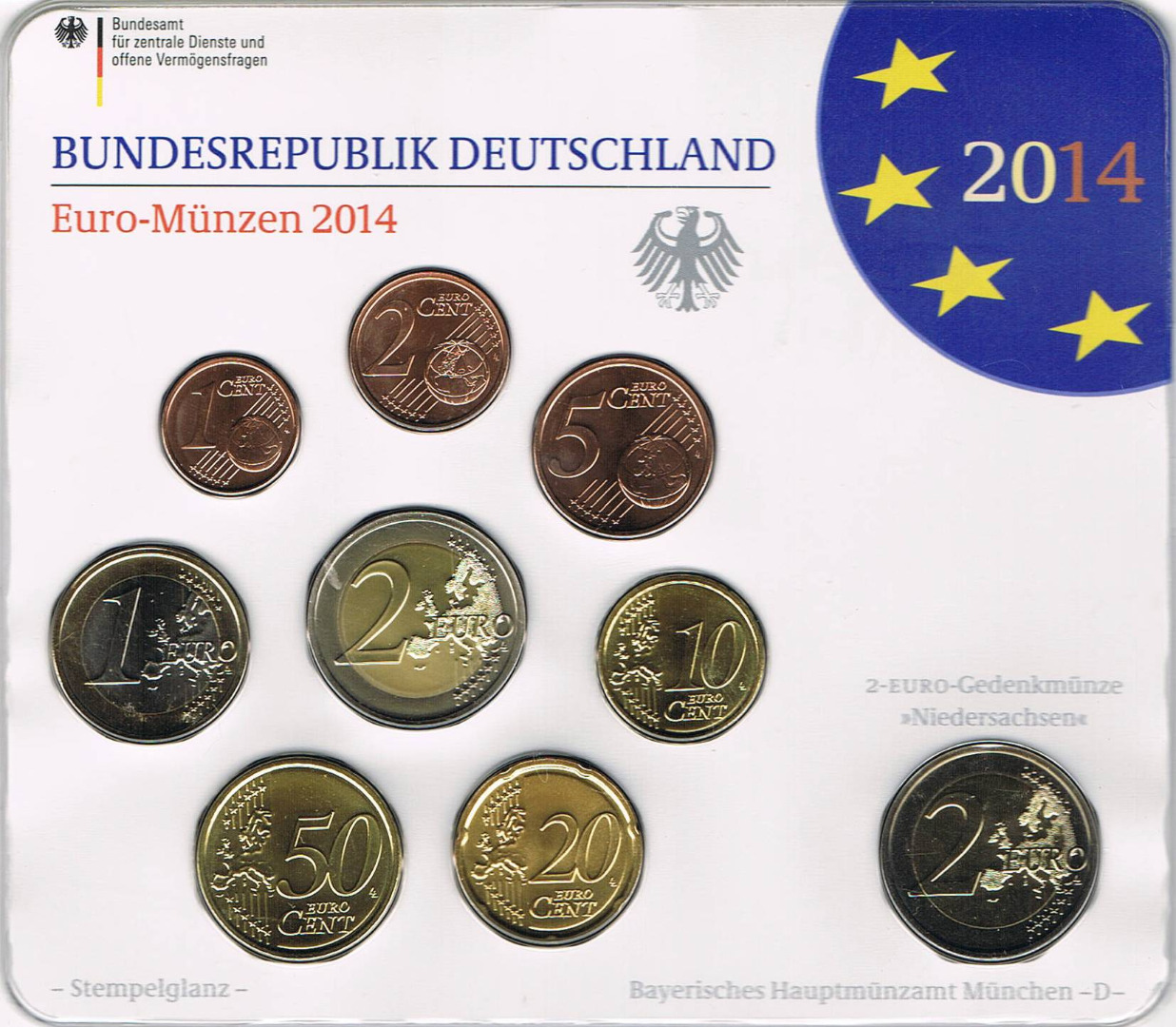Auflage: 34.000 Stempelglanz | enthält den kompletten Euro Münzen Satz 1 Cent - 2 Euro und die 2 Euro Gedenkmünze - Niedersachsen - Michaeliskirche Hildesheim der Prägestätte D - München 2014
