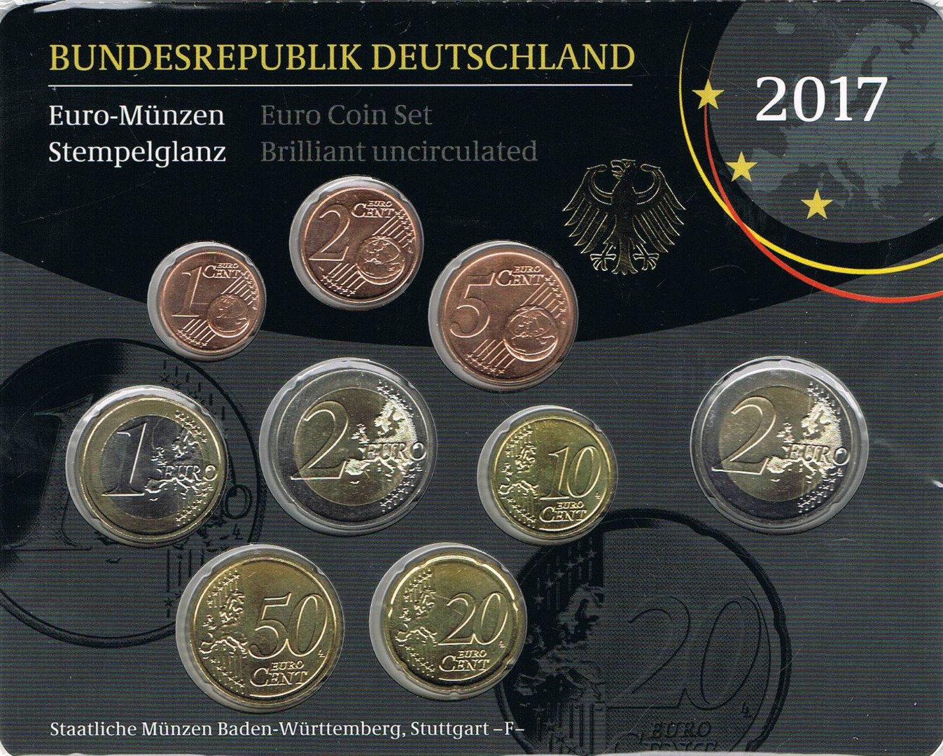 Deutschland Euro Münzen Kursmünzensatz 2017 F - Stuttgart