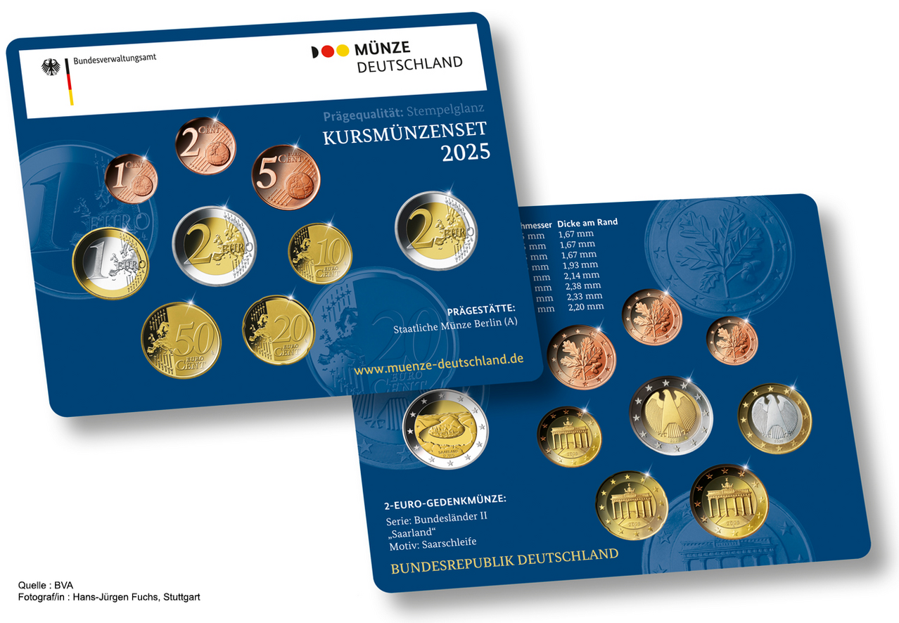 Auflage: 8.400 Stempelglanz | enthält den Euromünzen Satz 1 Cent - 2 Euro und die 2 Euro Gedenkmünze - Bundesländer II - Saarland - Saarschleife der Prägestätte J - Hamburg 2025
