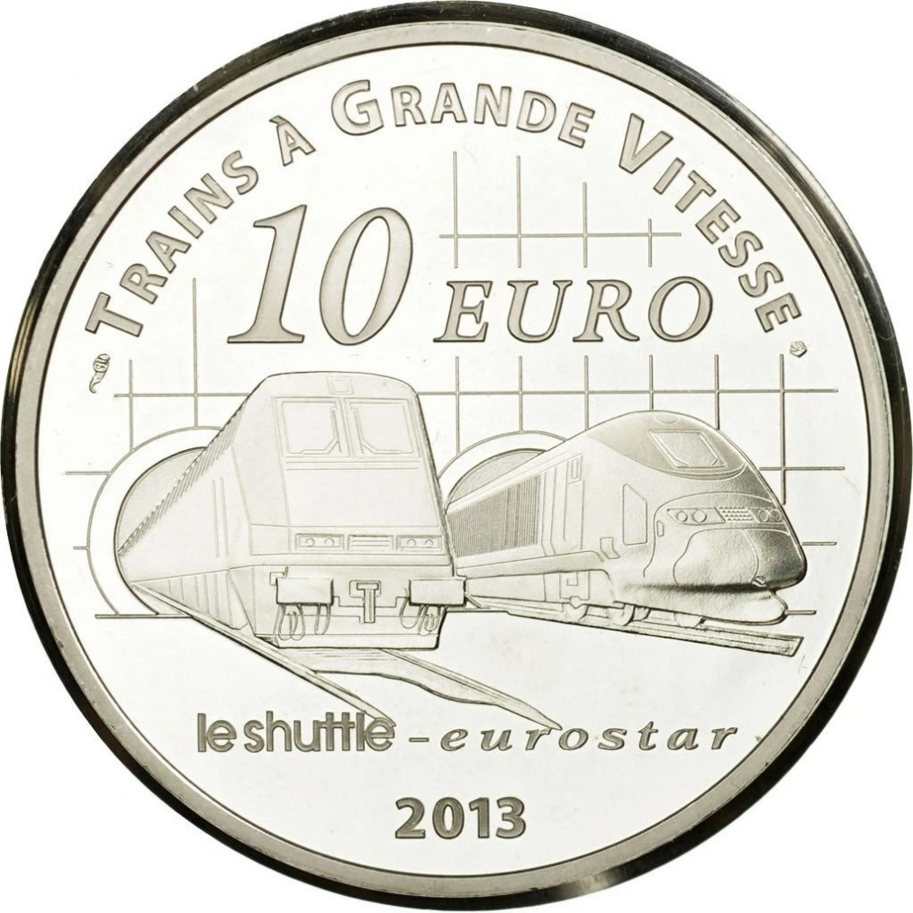 Frankreich 10 Euro Silber Münze - Bahnhof Gare du Nord, Bahnhof St. Pancras und der Kanaltunnel - Shuttle und Eurostar 2013