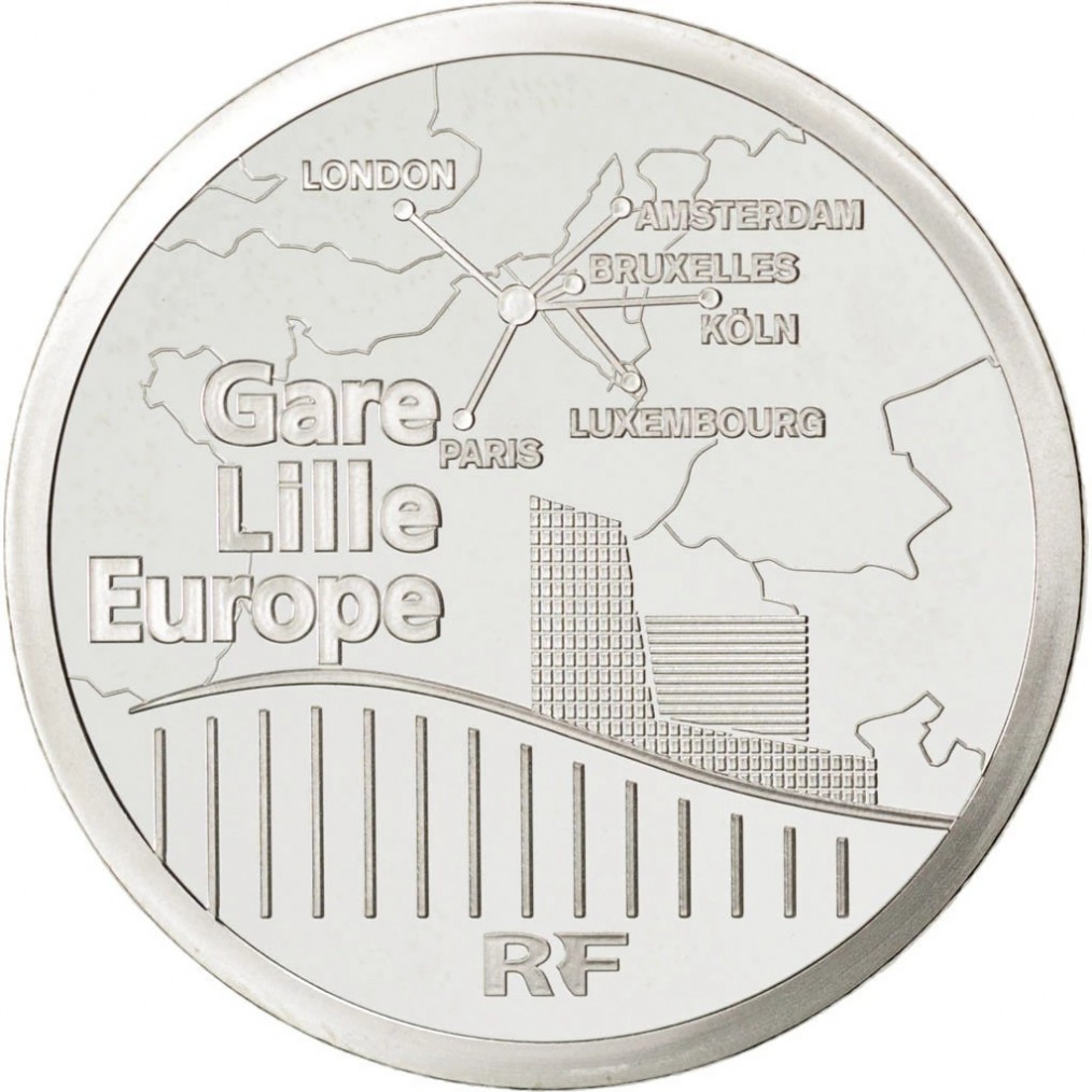 Frankreich 10 Euro Silber Münze - Bahnhof Lille Europe und TGV 2010