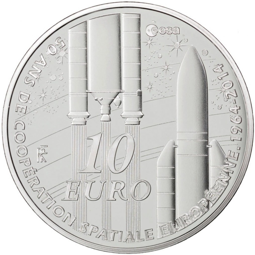 Frankreich 10 Euro Silber Münze - Europa-Serie - 50 Jahre europäische Zusammenarbeit im Weltraum - Europäische Weltraumorganisation ESA 2014