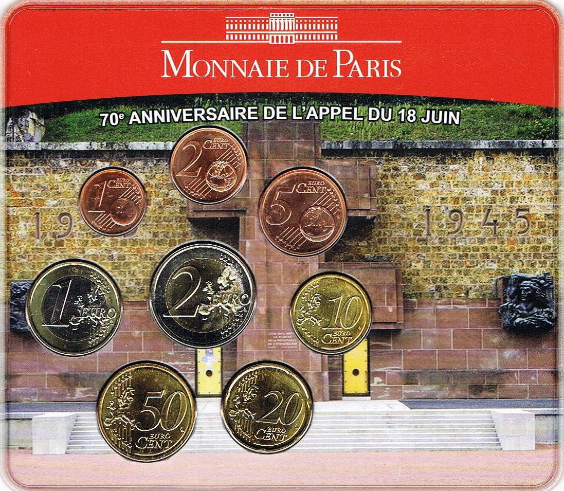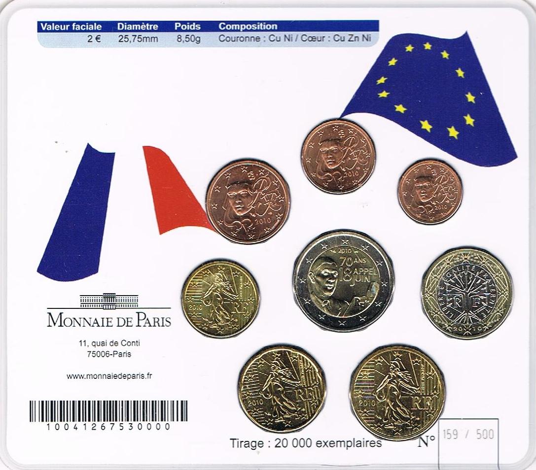 Auflage: 500 | enthält den kompletten Euro Münzen Satz 1 Cent - 1 Euro und die 2 Euro Gedenkmünze 70. Jahrestag des Appells vom 18. Juni 1940 von Frankreich 2010