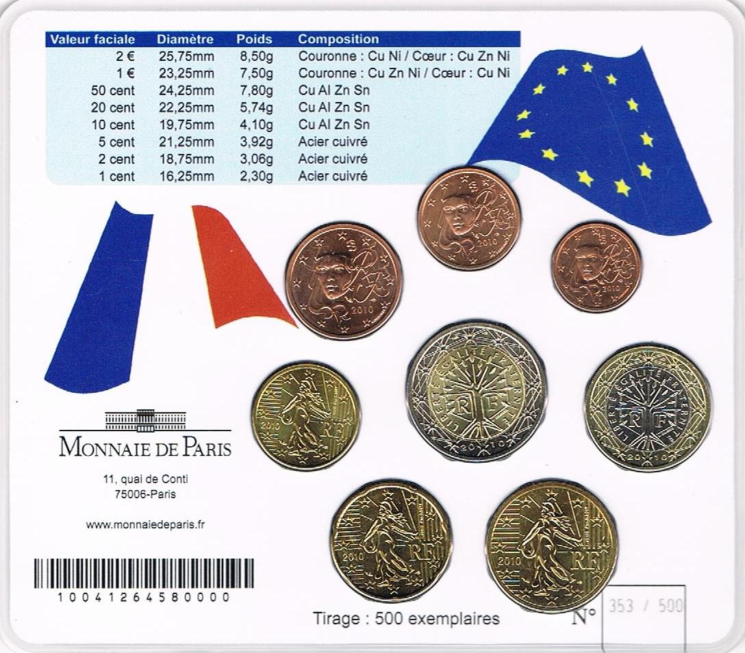 Auflage: 209 | enthält den kompletten Euro Münzen Satz 1 Cent - 2 Euro von Frankreich 2010