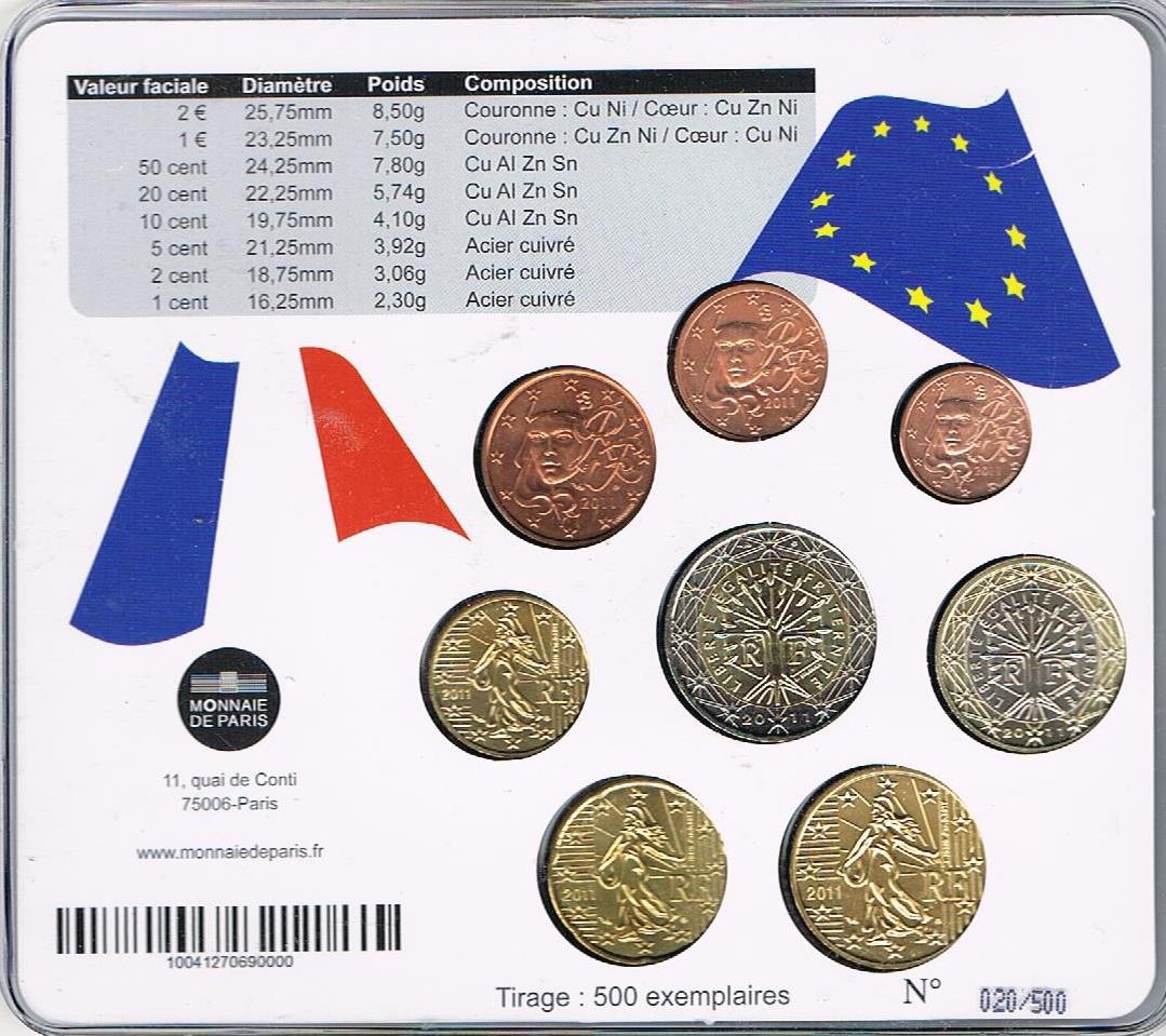 Auflage: 500 | enthält den kompletten Euro Münzen Satz 1 Cent - 2 Euro von Frankreich 2011