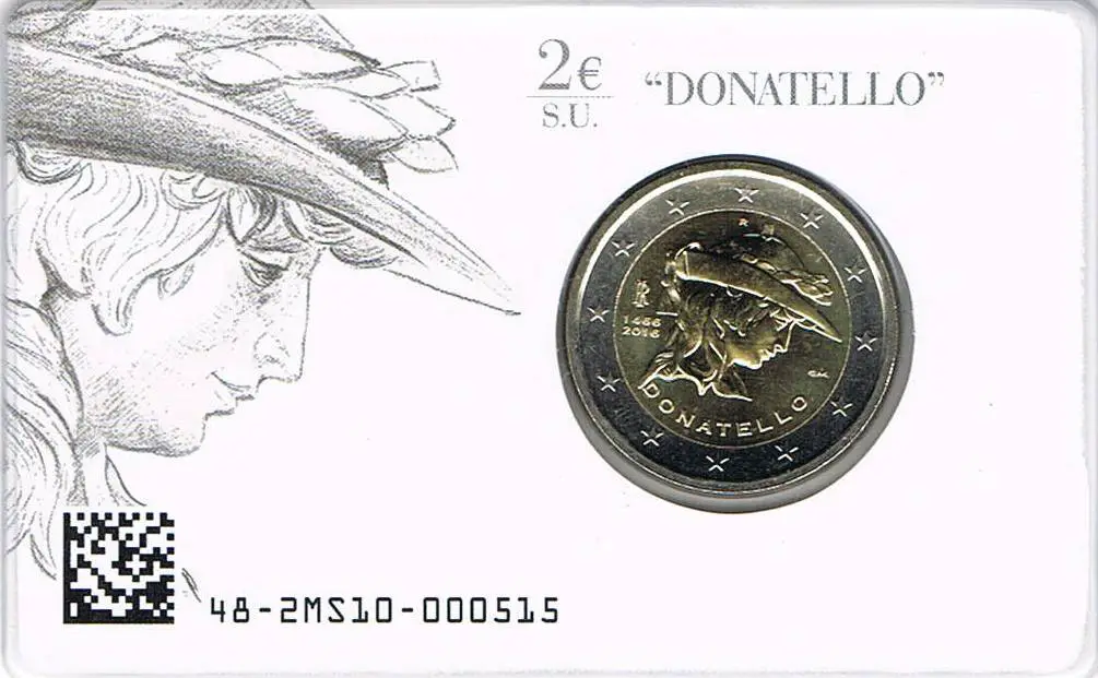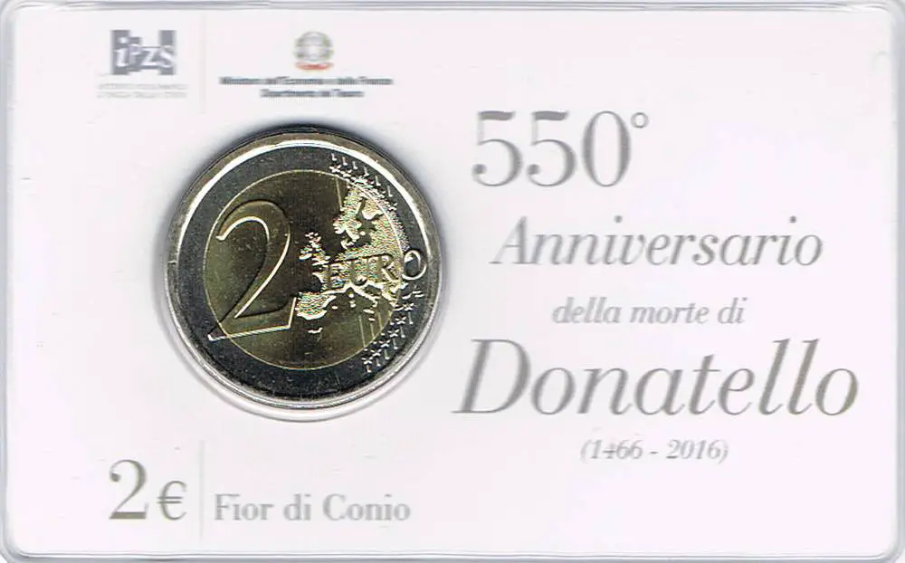 Italien 2 Euro Münze - 550. Todestag von Donatello 2016 in Coincard