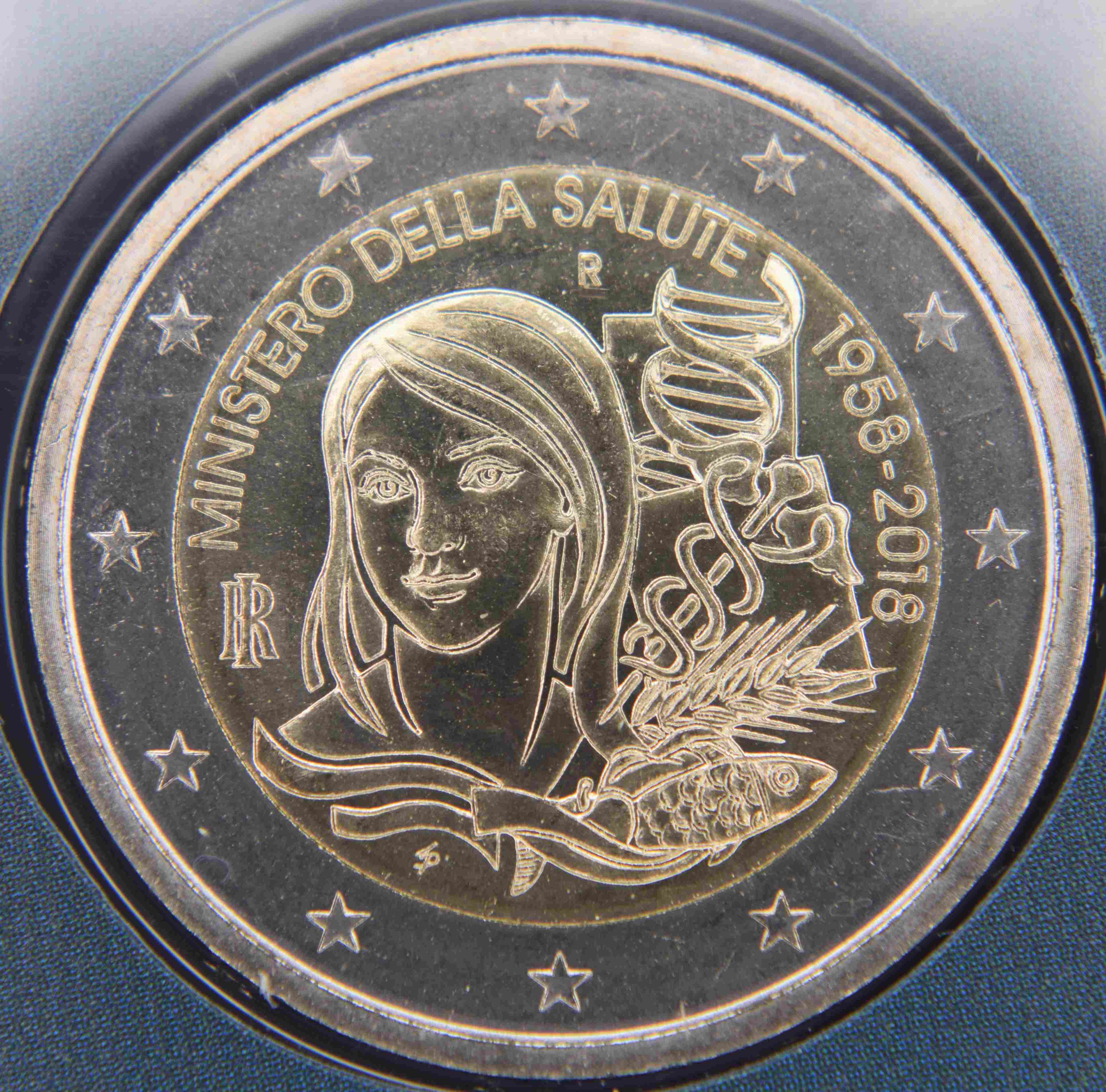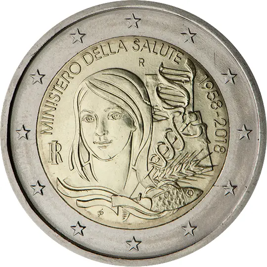 Italien 2 Euro Münze - 60. Jahrestag der Gründung des Gesundheitsministeriums 1958 - 2018