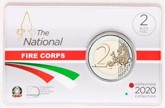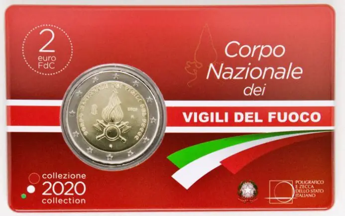 Italien 2 Euro Münze - 80. Jahrestag der Gründung des Nationalen Feuerwehrkorps 2020 - Coincard