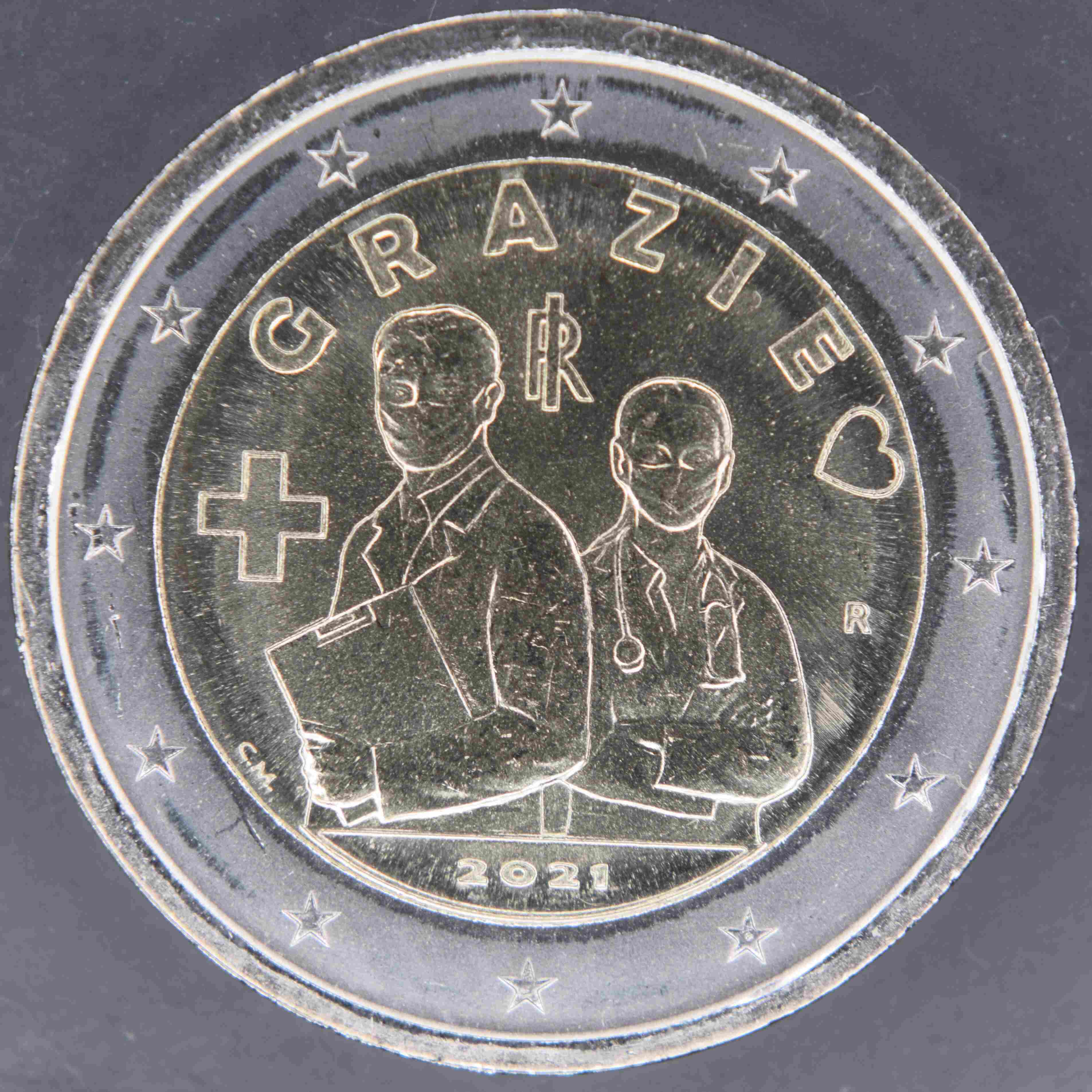 Italien 2 Euro Münze - Grazie - Danke - Medizinische Fachkräfte 2021 - Coincard