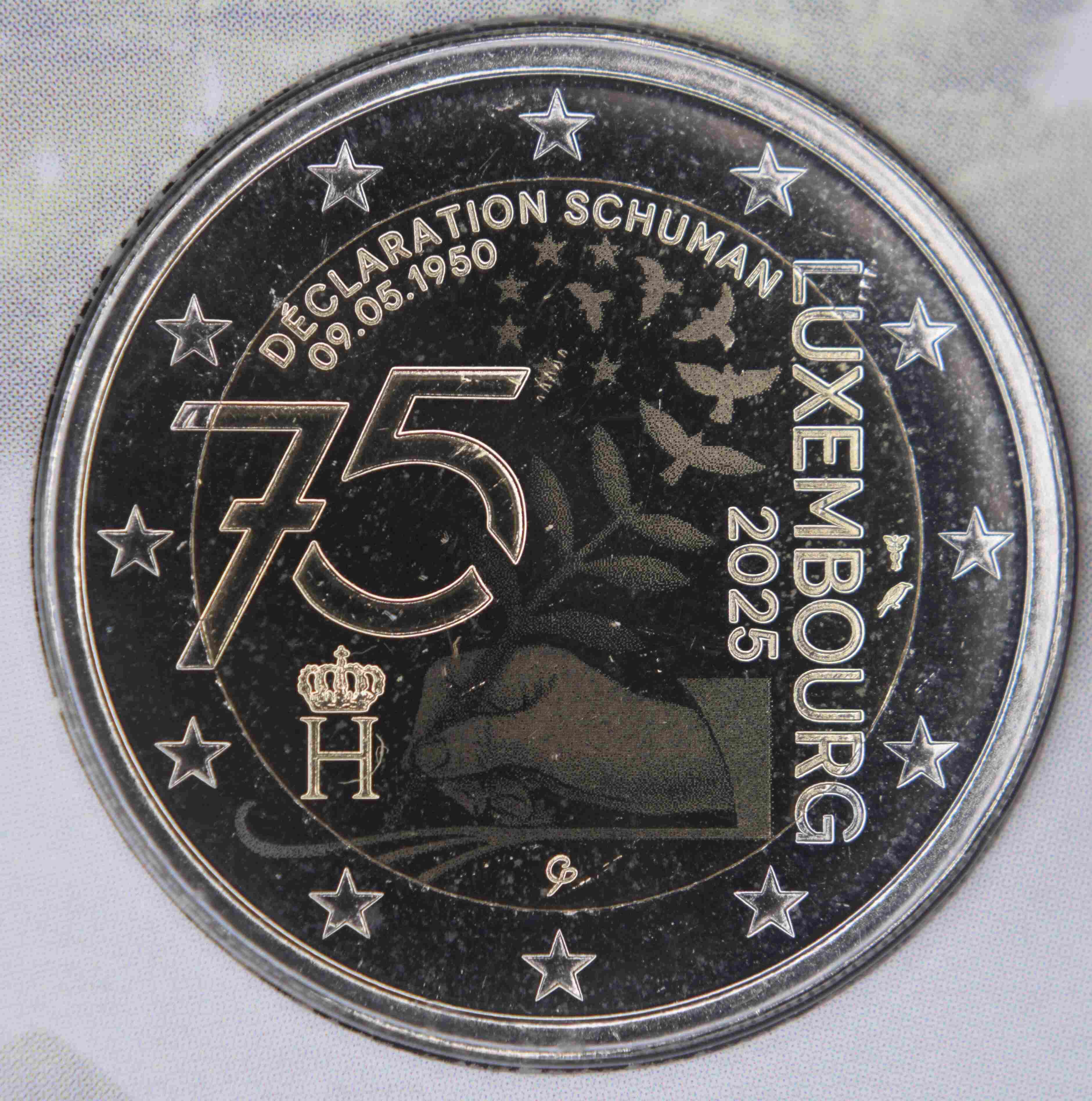 Luxemburg 2 Euro Münze - 75. Jahrestag der Schuman-Erklärung 2025 - Münzzeichen KNM - Photo-Prägung
