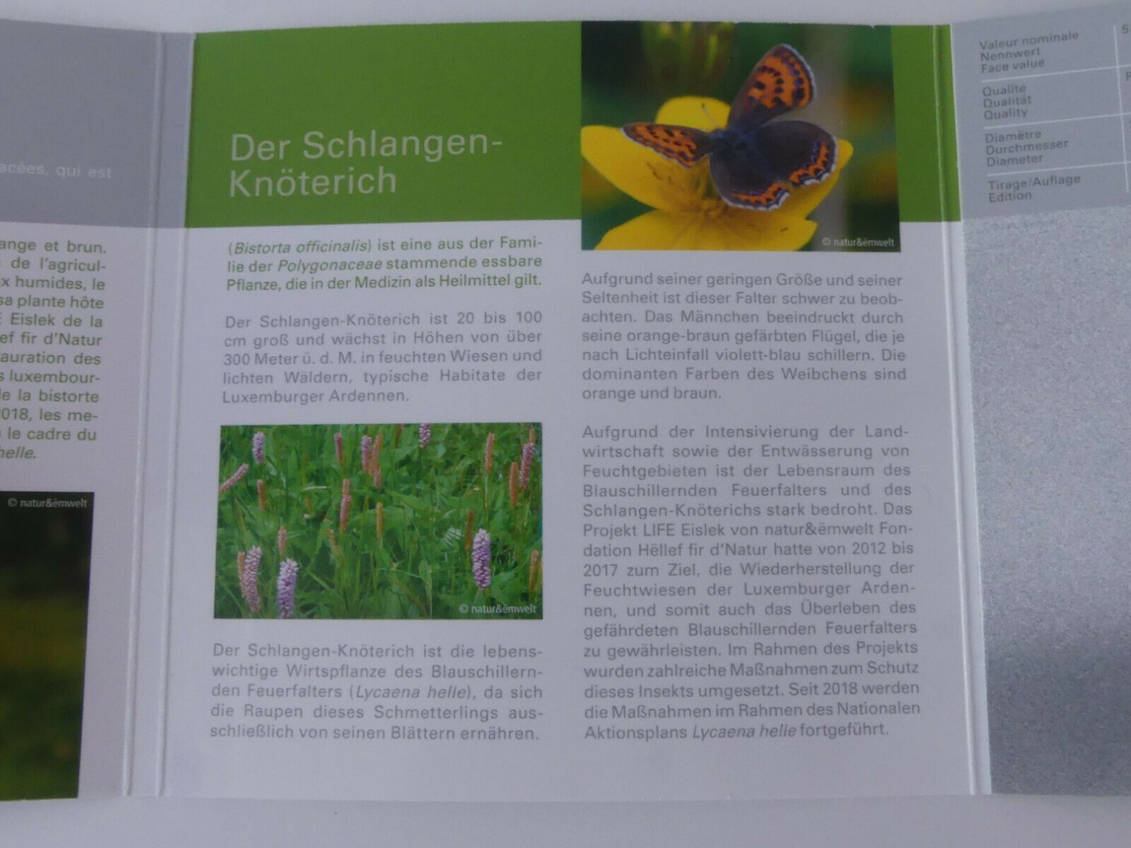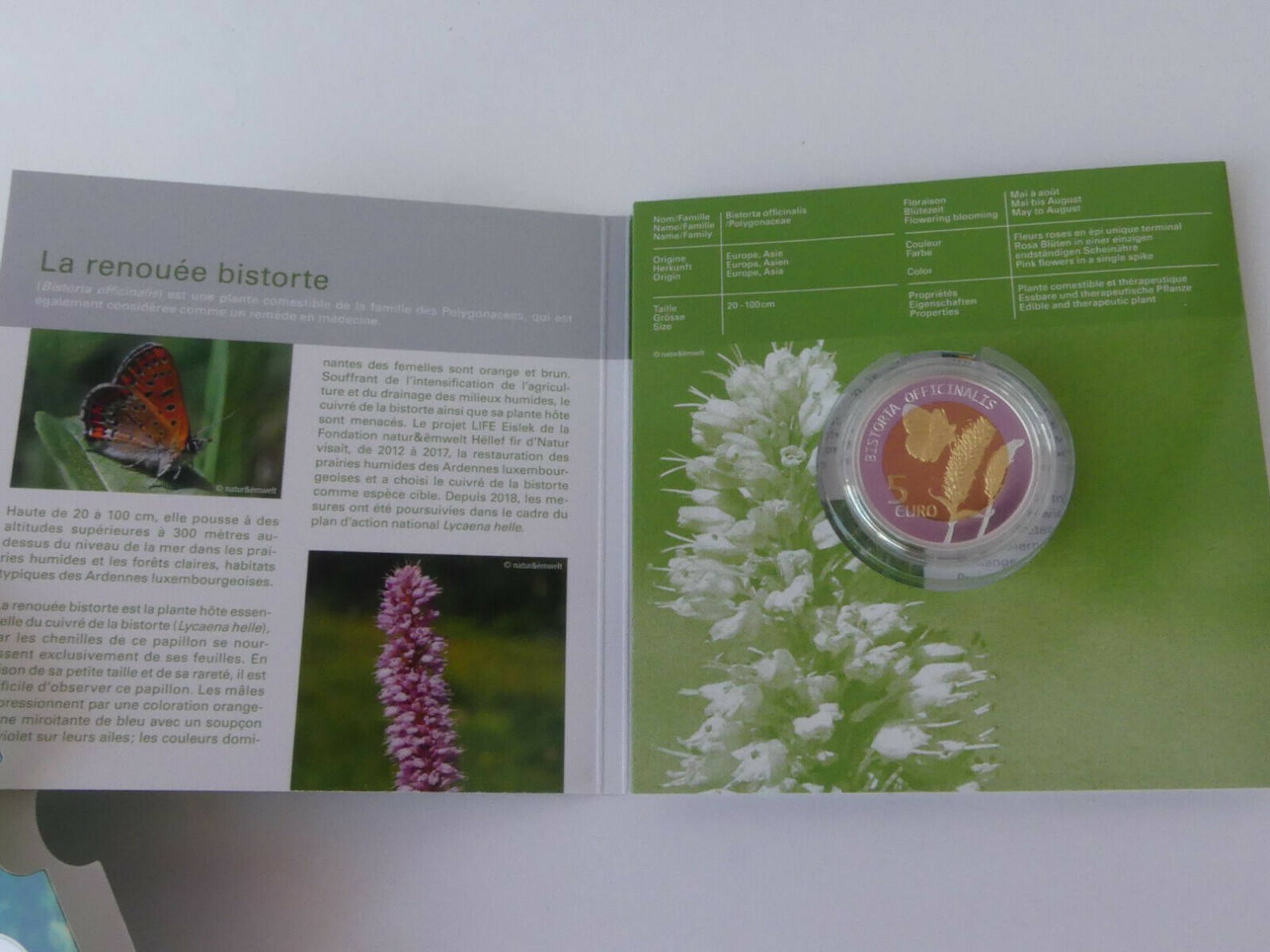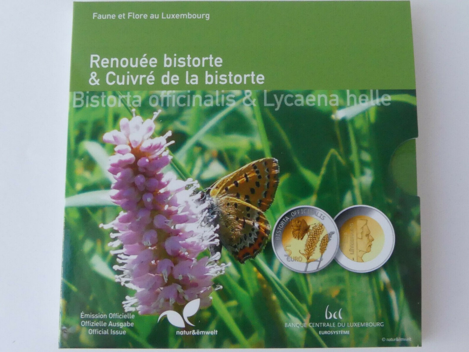Luxemburg 5 Euro Bimetall Silber / Nordisches Gold Münze - Fauna und Flora - Schlangen-Knöterich 2020
