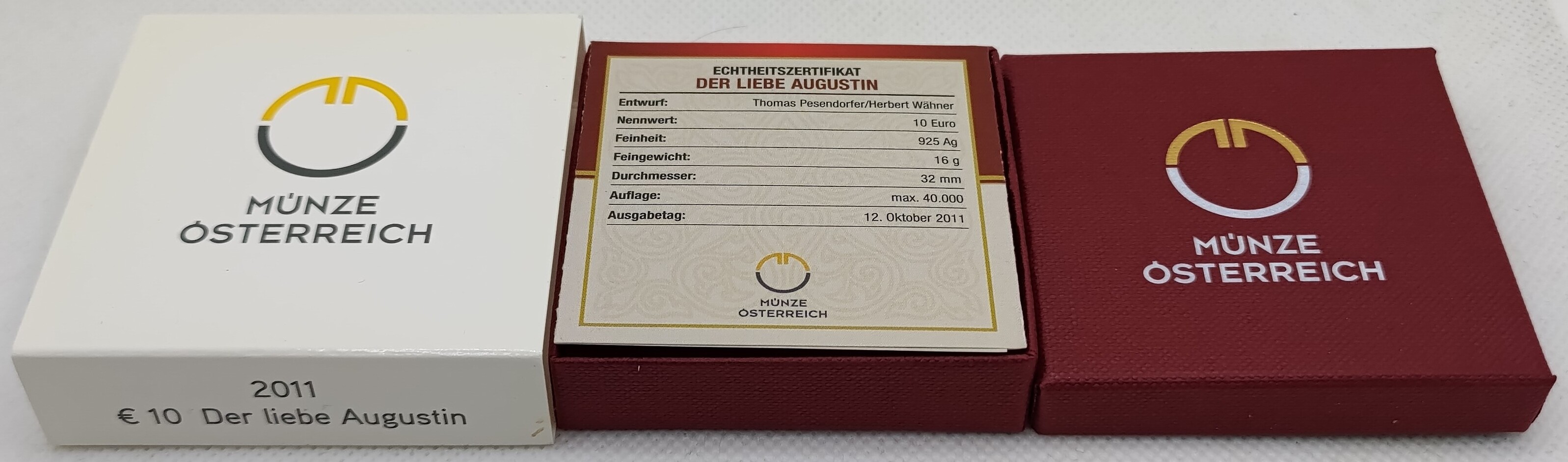 Österreich 10 Euro Silber Münze Sagen und Legenden in Österreich - Der liebe Augustin 2011 - Polierte Platte PP