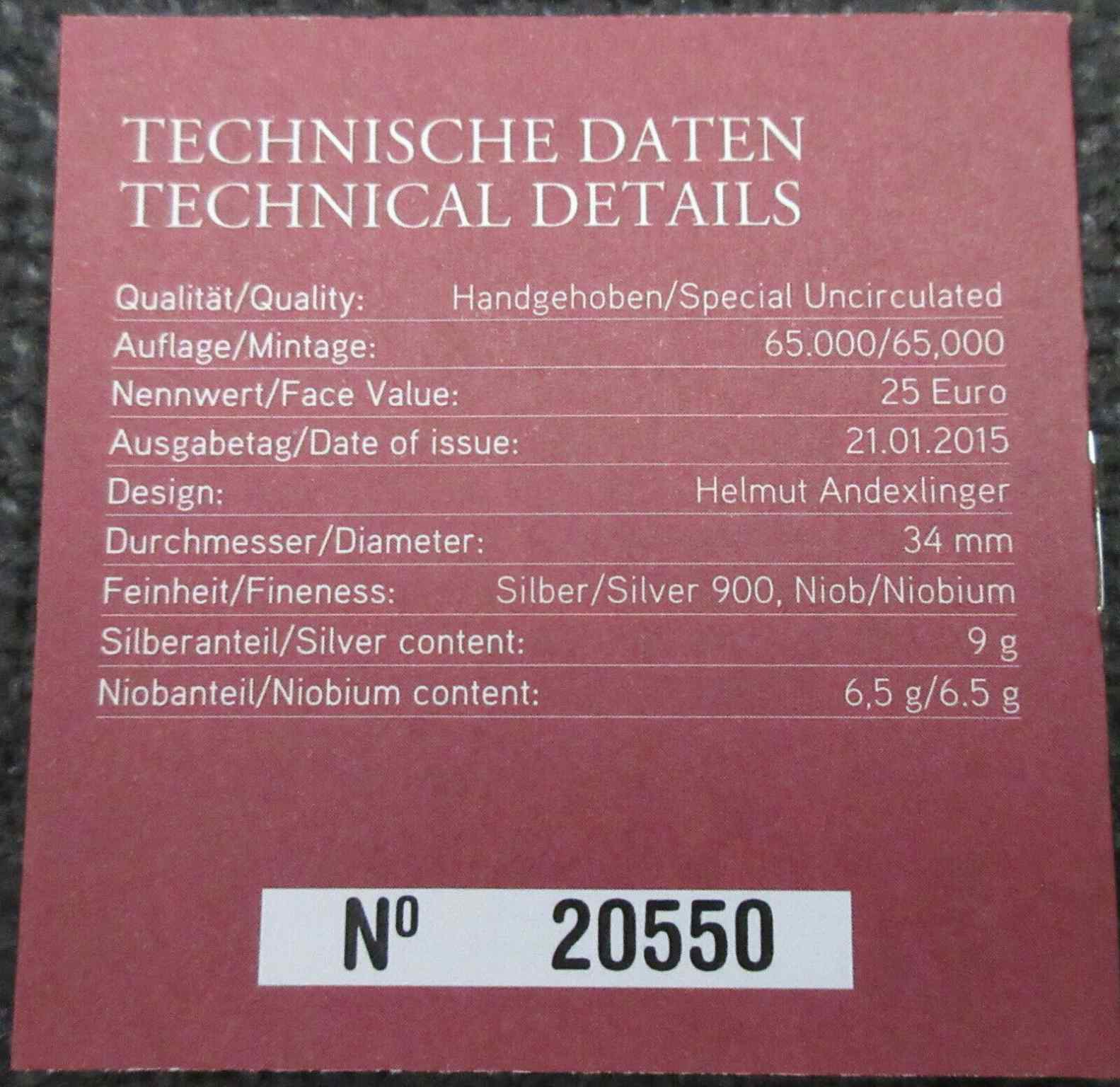 Österreich 25 Euro Silber/Niob Münze Kosmologie 2015