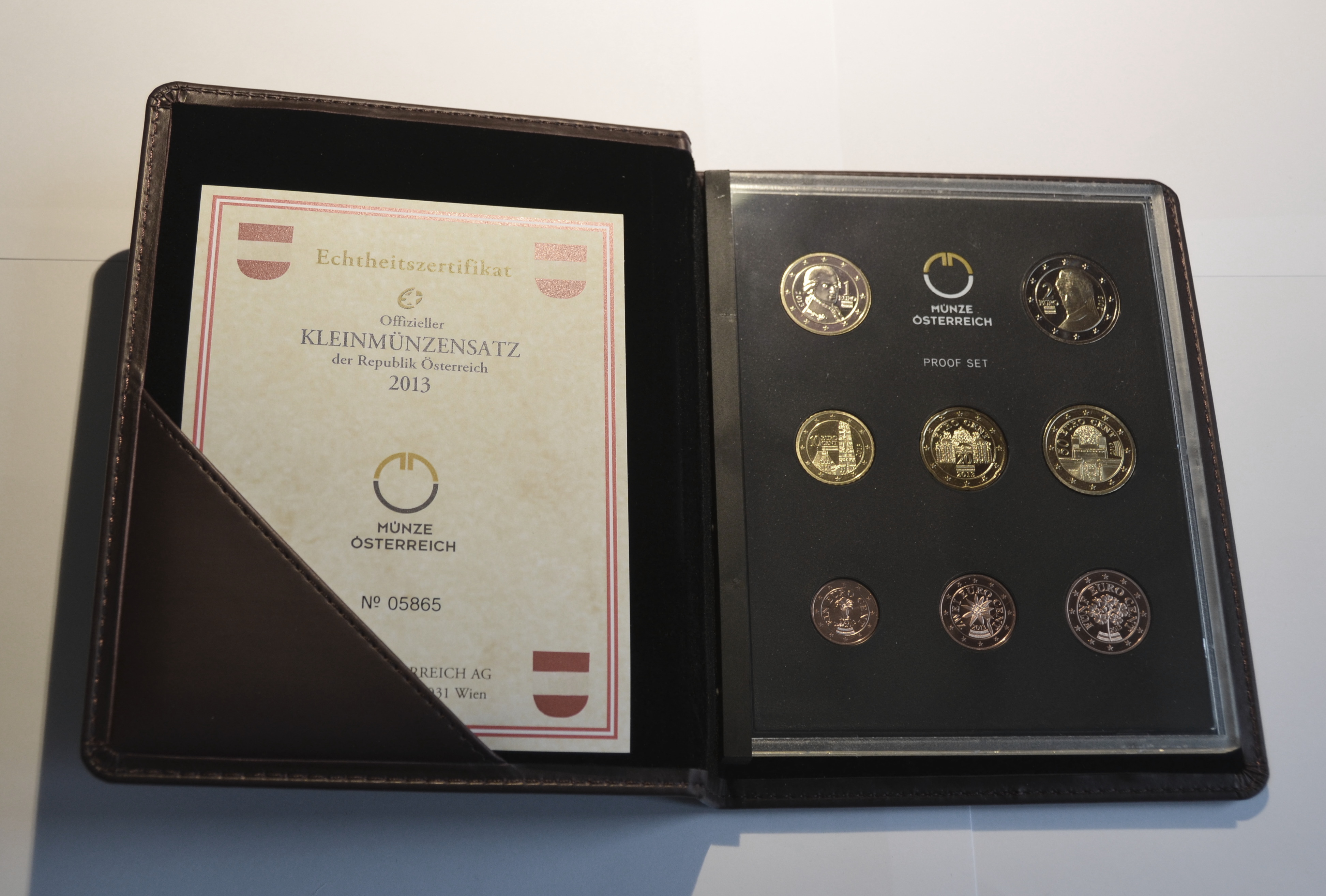 Auflage: 10.000 | enthält den kompletten Euro Münzen Satz 1 Cent - 2 Euro von Österreich 2013 Polierte Platte PP