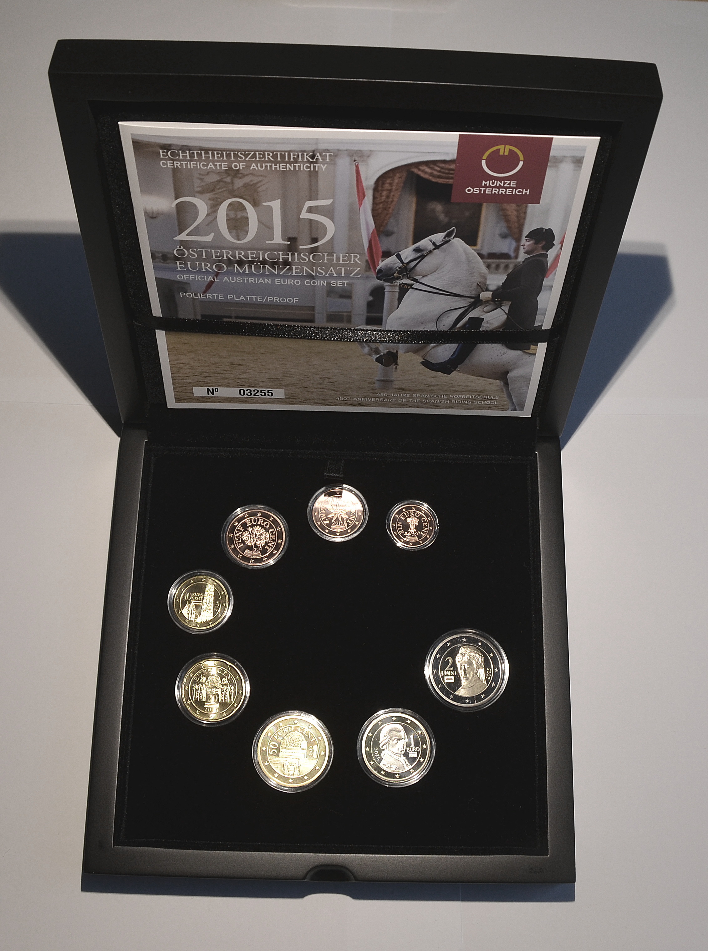 Auflage: 10.000 | enthält den kompletten Euro Münzen Satz 1 Cent - 2 Euro von Österreich 2015 Polierte Platte PP