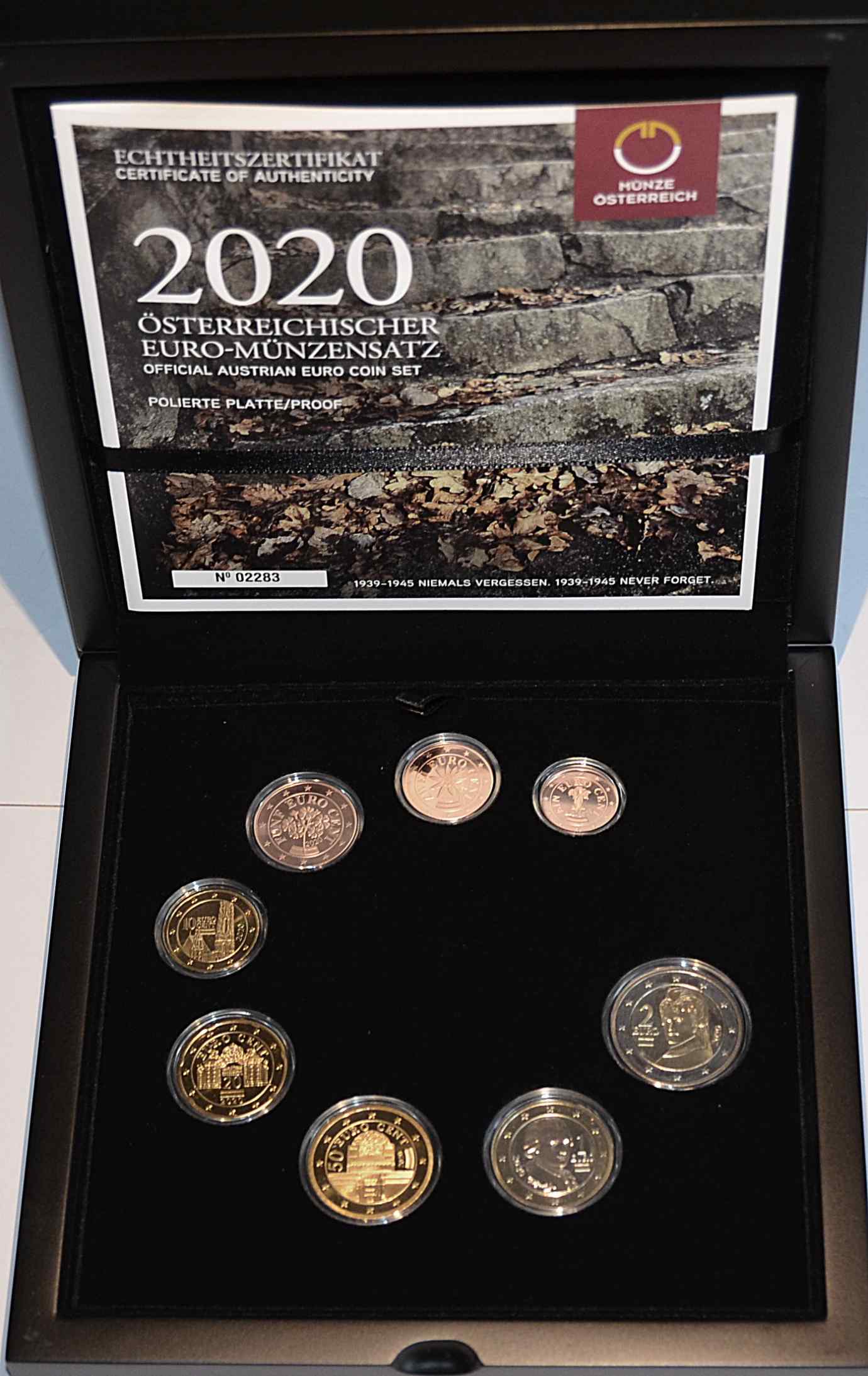 Auflage: 10.000 | enthält den Euro Münzen Satz 1 Cent - 2 Euro von Österreich 2020 Polierte Platte PP