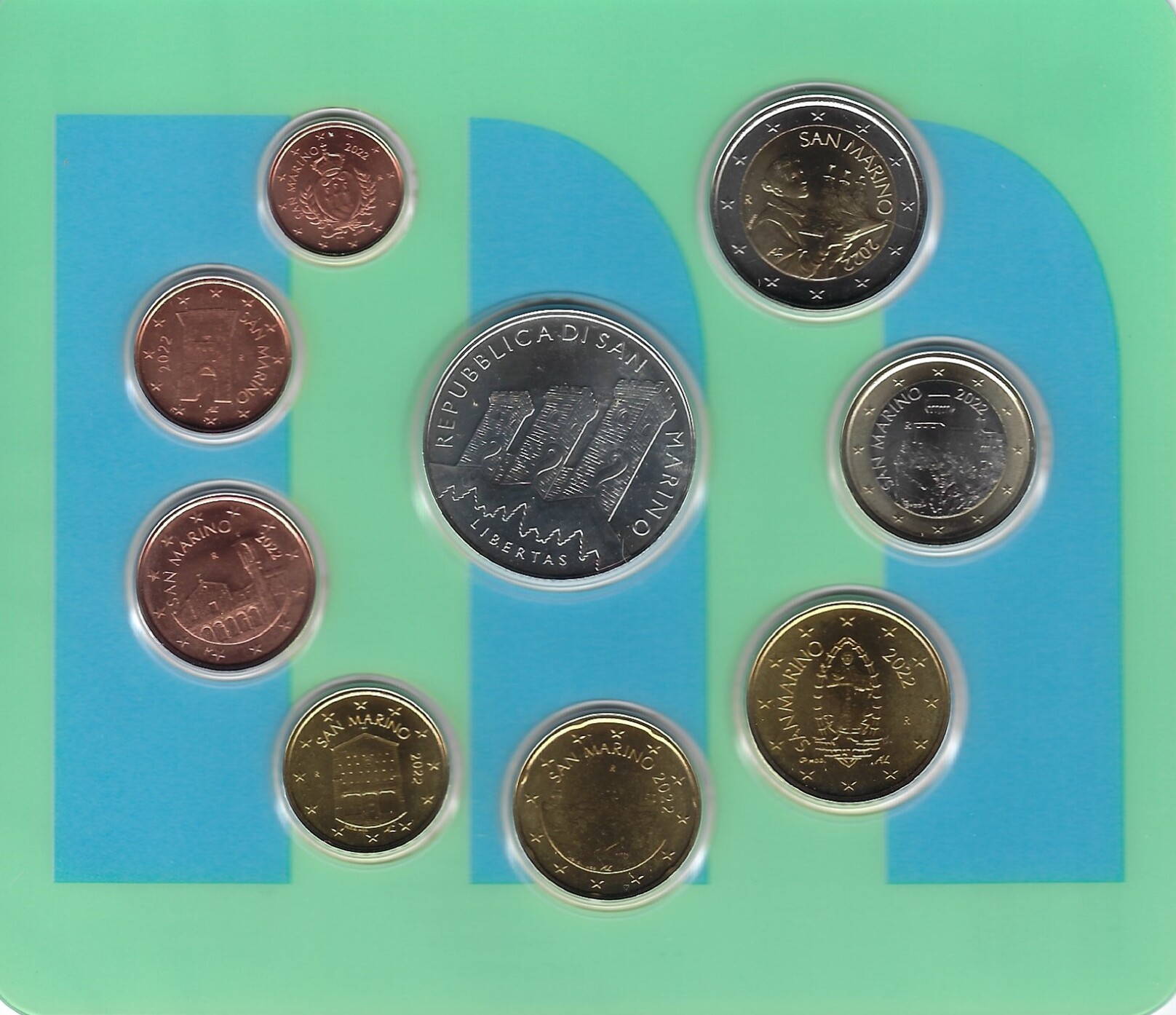 San Marino Euromünzen Kursmünzensatz mit 5 Euro Silbermünze - Internationaler Tag der Berge 2022