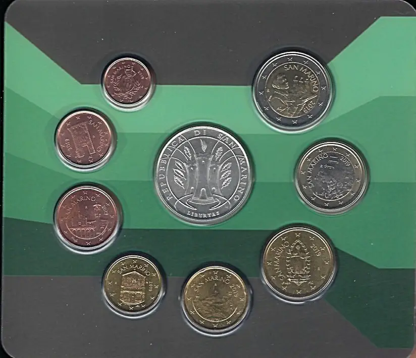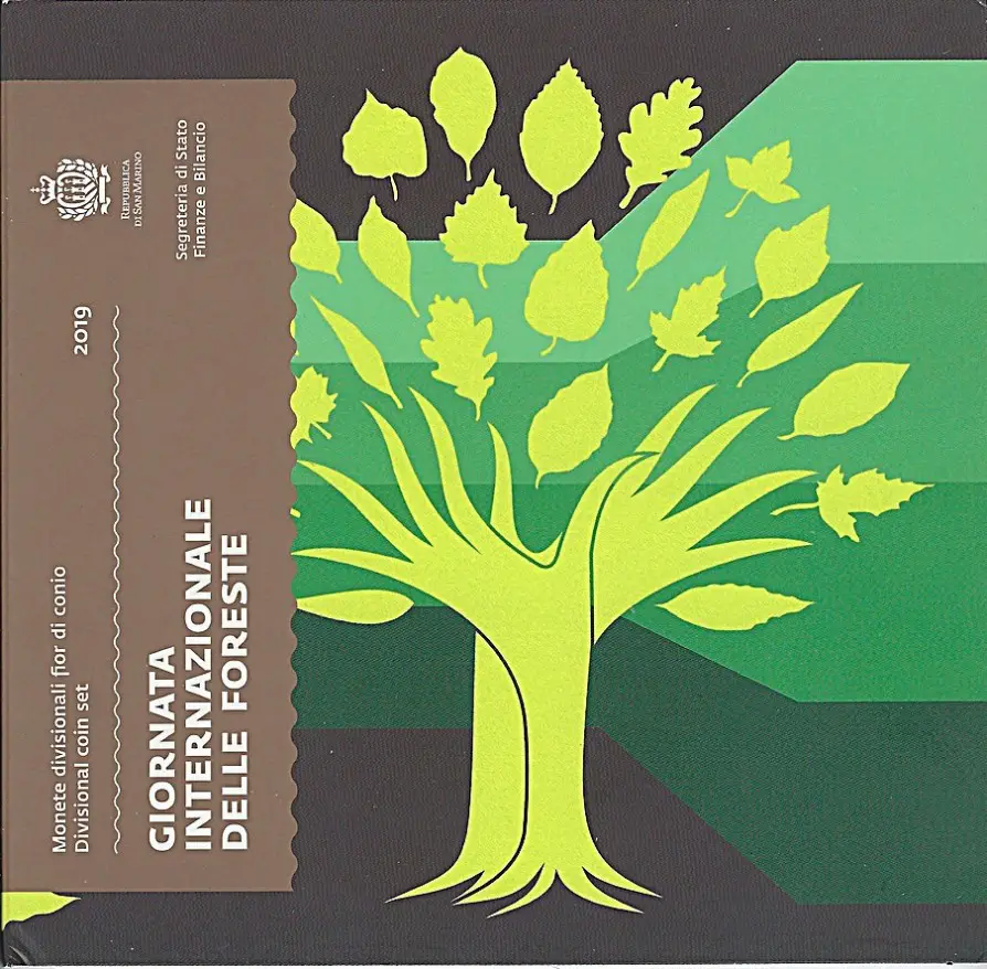 San Marino Euromünzen Kursmünzensatz mit 5 Euro Silbermünze - Internationaler Tag der Wälder 2019