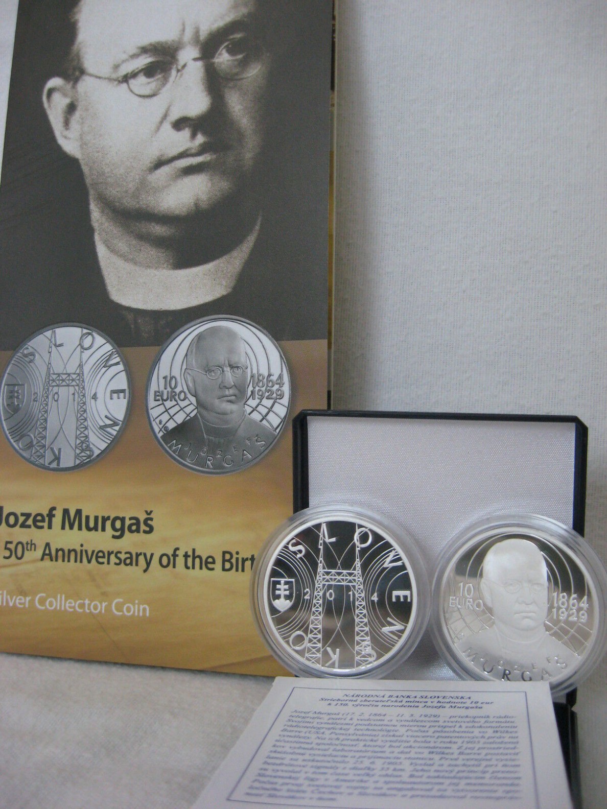 Slowakei 10 Euro Silber Münze 150. Geburtstag von Jozef Murgas 2014 Polierte Platte PP