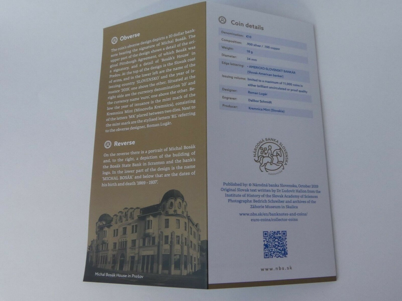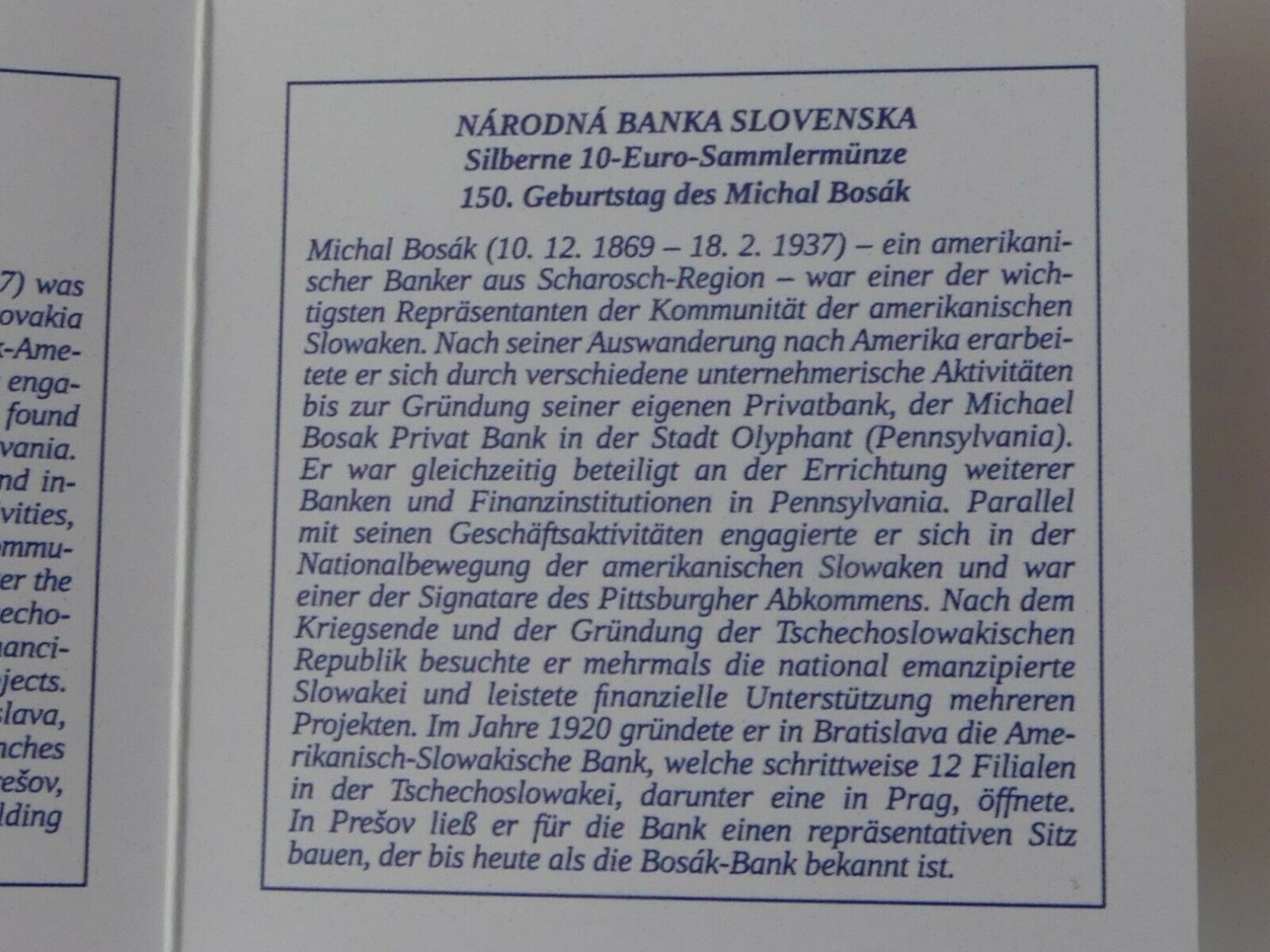Slowakei 10 Euro Silbermünze - 150. Geburtstag von Michal Bosak 2019 - Polierte Platte