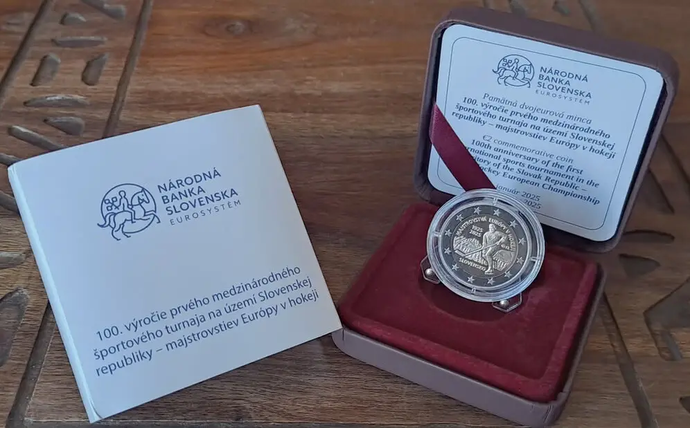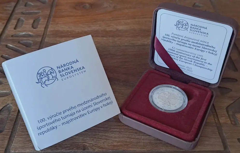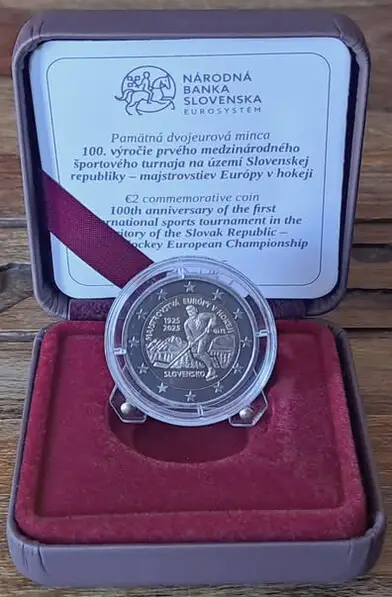 Slowakei 2 Euro Münze - 100. Jahrestag des ersten internationalen Sportturniers auf dem Gebiet der Slowakischen Republik - die Eishockey-Europameisterschaft 2025 - Proof-like