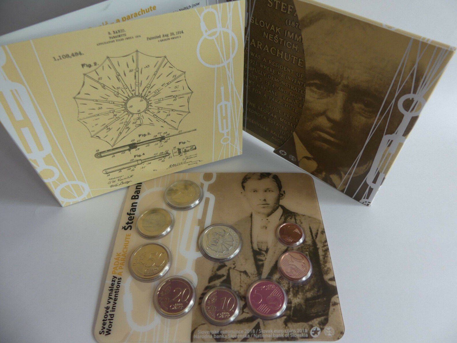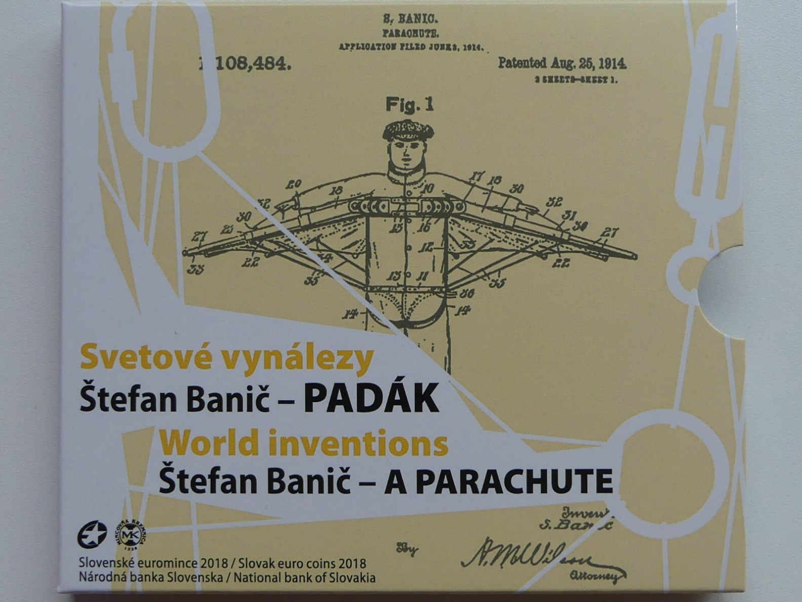 Slowakei Euro Münzen Kursmünzensatz Welterfindungen der slowakischen Erfinder - Stefan Banic - Militärischer Fallschirm 2018