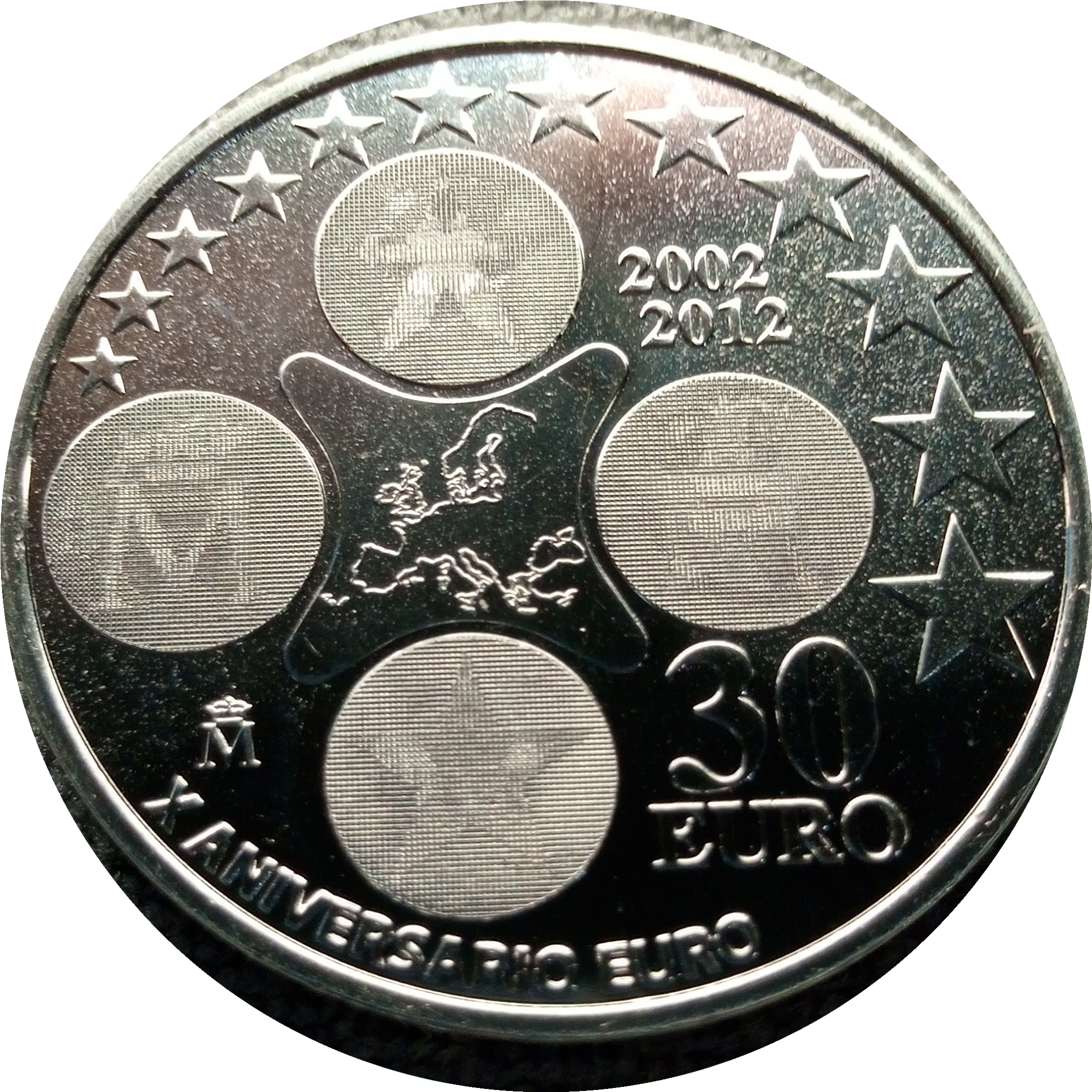 Spanien 30 Euro Silber Münze 10 Jahre Euro-Bargeld 2012
