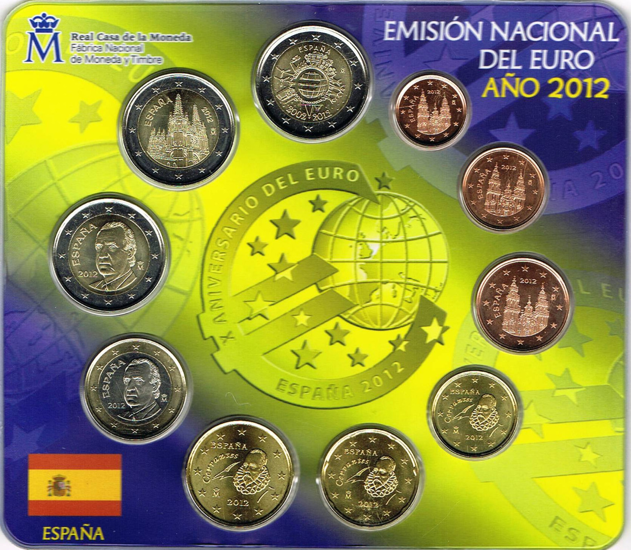 Auflage: 13.610 | enthält den kompletten Euro Münzen Satz 1 Cent - 2 Euro von Spanien 2012 und die 2 Euro Gedenkmünze 10 Jahre Euro-Bargeld 2012 und die 2 Euro Gedenkmünze Kathedrale von Burgos 2012