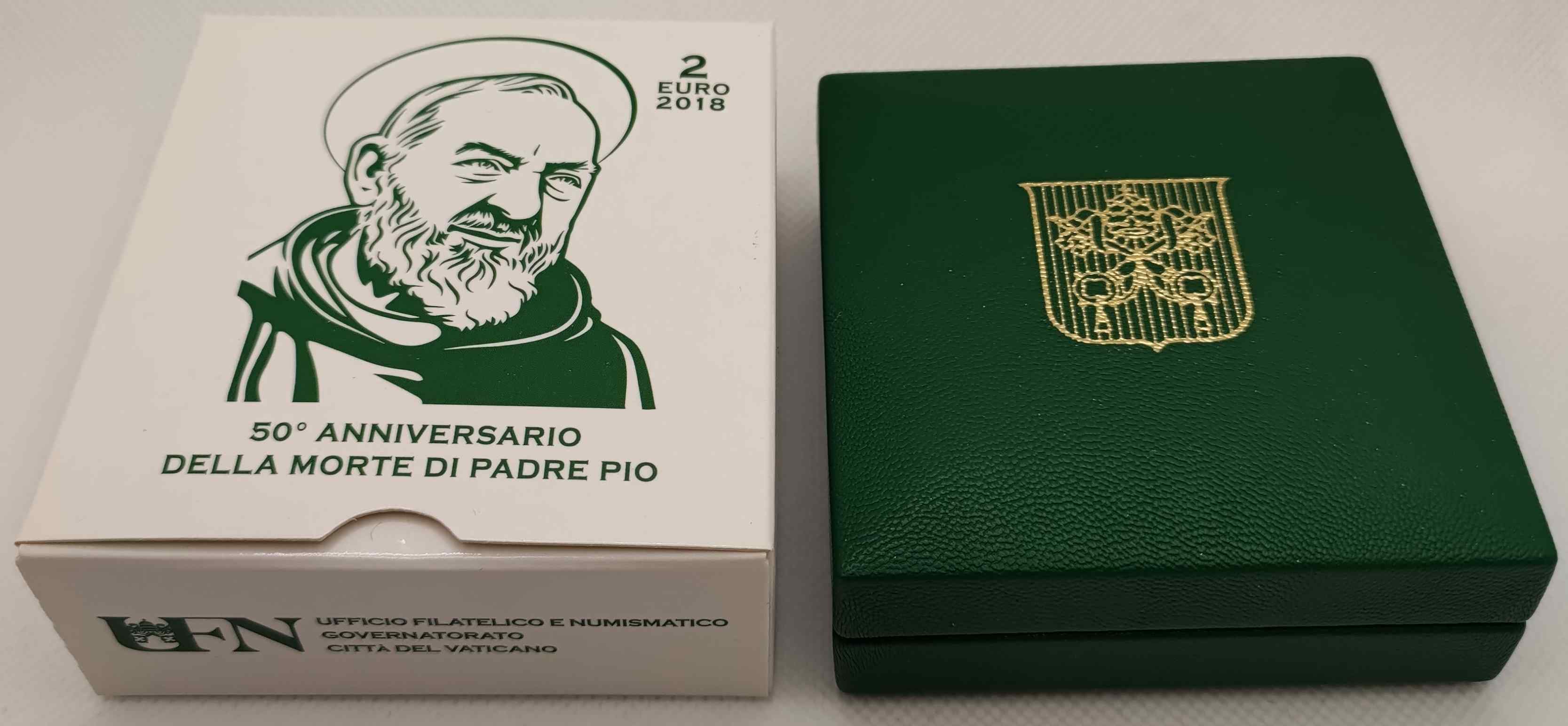 Vatikan 2 Euro Münze - 50. Todesjahr von Pater Pio 2018 - Polierte Platte