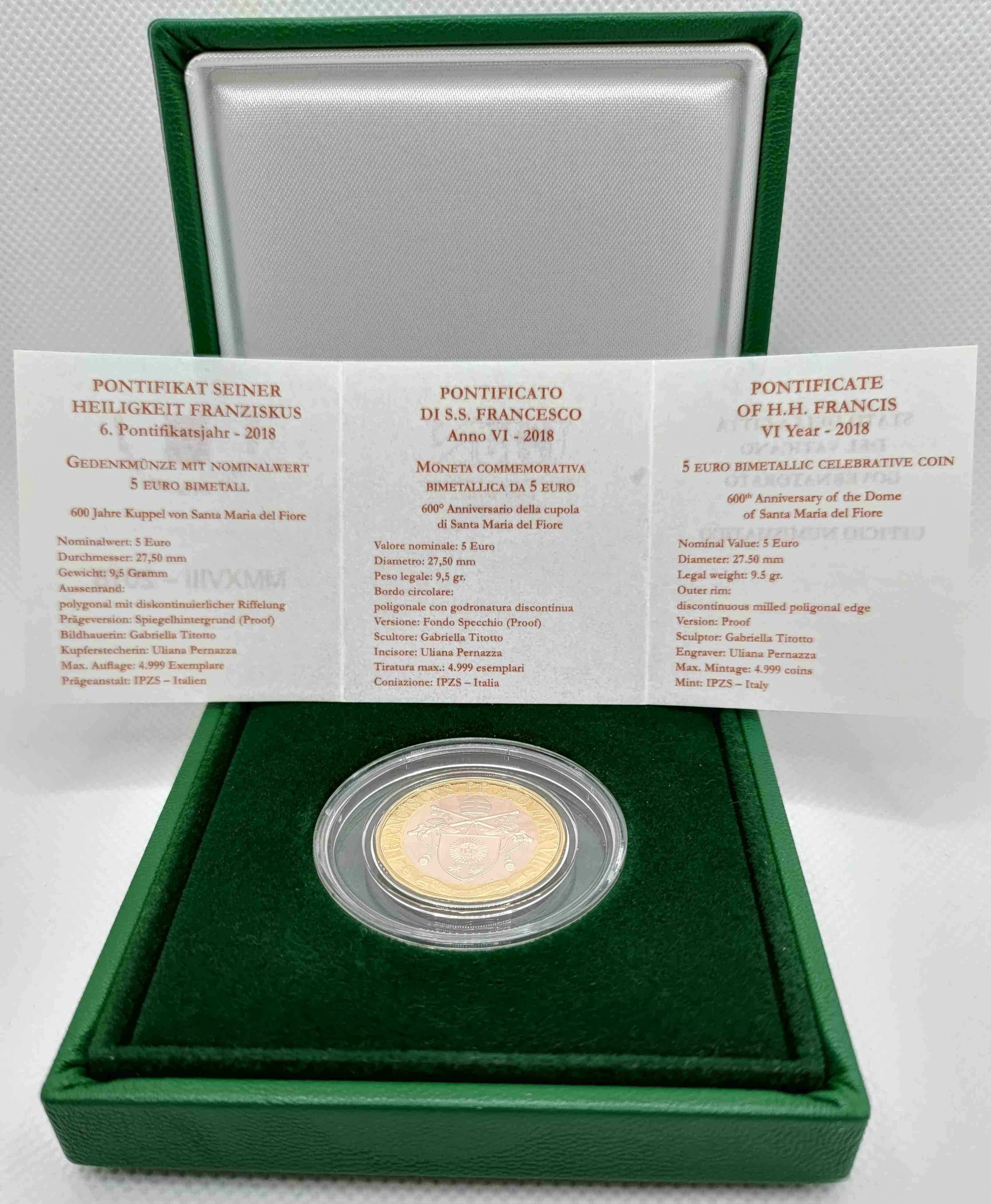 Vatikan 5 Euro Münze - 600 Jahre Kuppel von Santa Maria del Fiore 2018