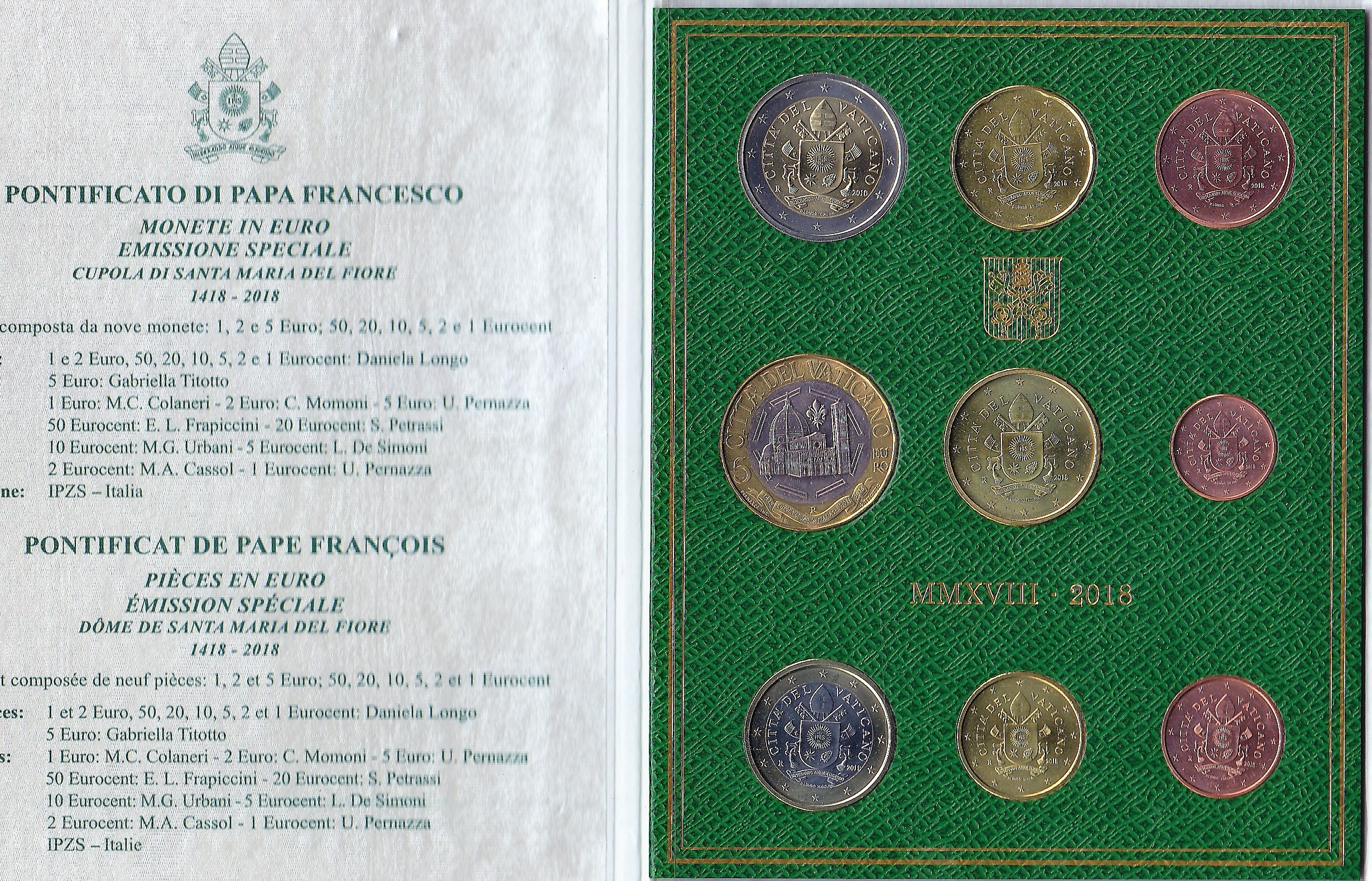 Vatikan Euro Münzen Kursmünzensatz 2018 - 600 Jahre Kuppel von Santa Maria del Fiore