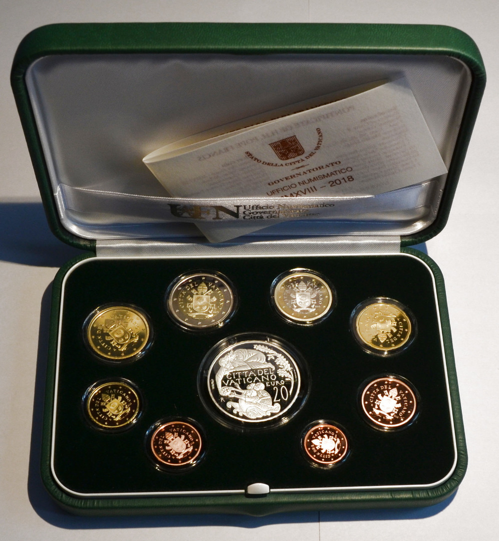 Vatikan Euro Münzen Kursmünzensatz 2018 Polierte Platte PP - mit 20 Euro Silbermünze