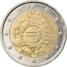 [#424515] Belgien, 2 Euro, 10 ans de l'Euro, 2012, VZ+, Bi-Metallic