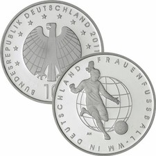 Auflage: 1.800.000 | Kupfernickel | Gewicht: 14,00 g | Durchmesser: 32,5 mm | In der Rand Inschrift ist 5x der Buchstabe S enthalten, jeweils 1x mit Serifen. Daraus läßt sich die Prägestätte ablesen : DIE ZUKUNFT DES(A) FUS(D) S(F) BALLS(G) IS(J) T WEIBLICH
