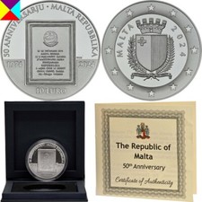 Auflage: 1.150 Polierte Platte PP | Silber: 925/1000 | Gewicht: 28,28 g | Durchmesser: 38,61 mm | im Etui mit 3,00 Euro Briefmarke aus Silber | Proof like | Silber: 999/1000 | Gewicht: 20,00 g | Format: 26,00 x 34,00 mm | Dicke: 2,24 mm und einer Banknote | 10 maltesische Pfund | gravierter Stahl
